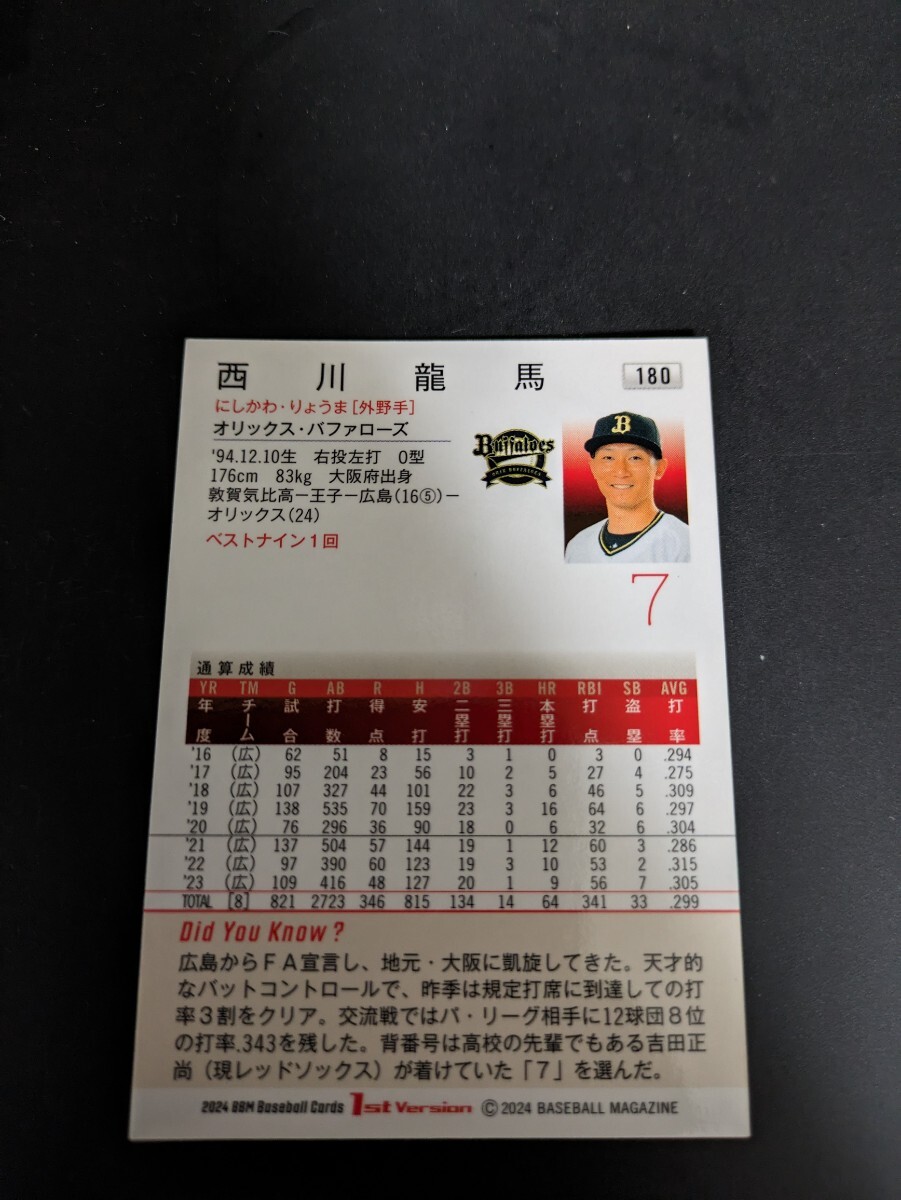 即決★BBM2024 オリックス 西川龍馬 キラパラレル