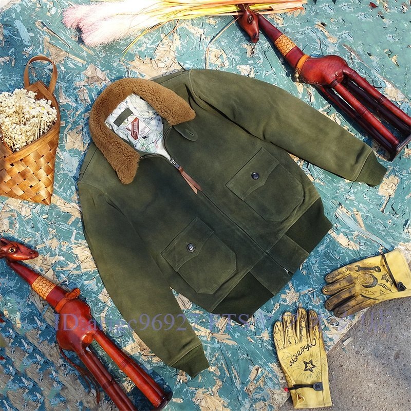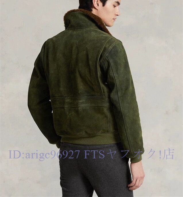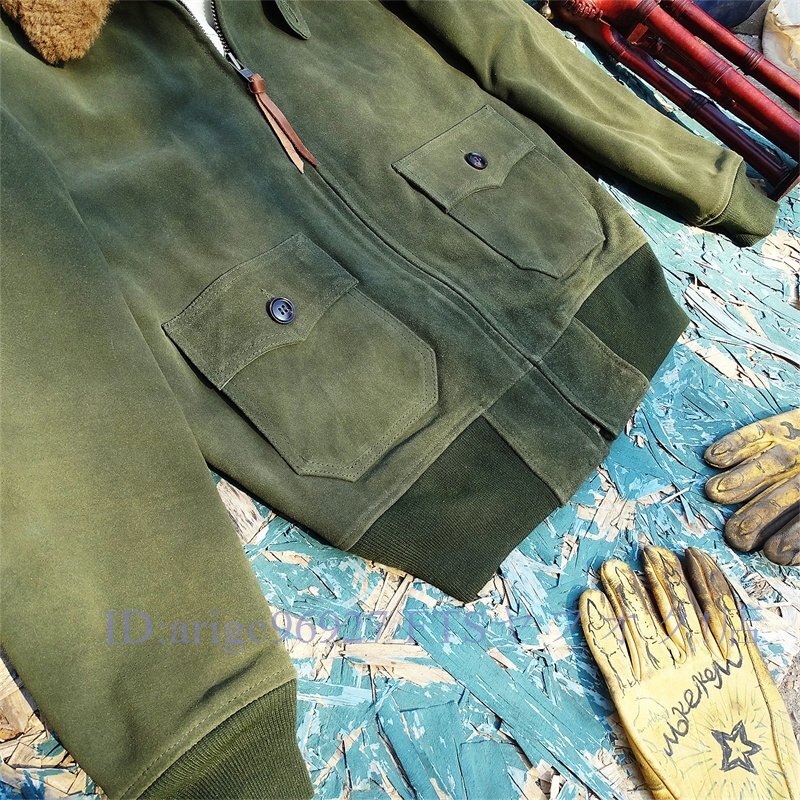 B1900☆新品G9レザージャケット 上品 本革 牛革スエードジャケット ウール襟 ライダースジャケット 革ジャン S~4XL グリーン