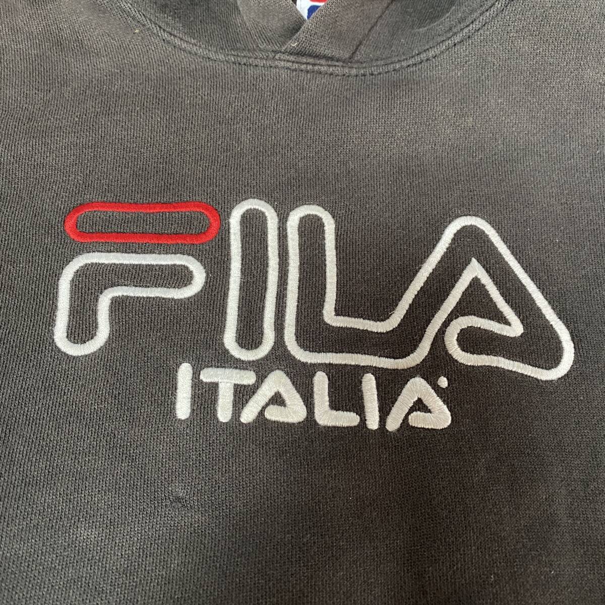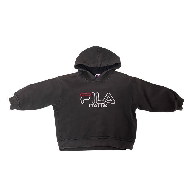 フィラ キッズ ヴィンテージ フーディースウェット パーカー ブラック  FIRA USA企画 フーデッド ビッグロゴ デカロゴ 刺繍ロゴ 雅瀬472