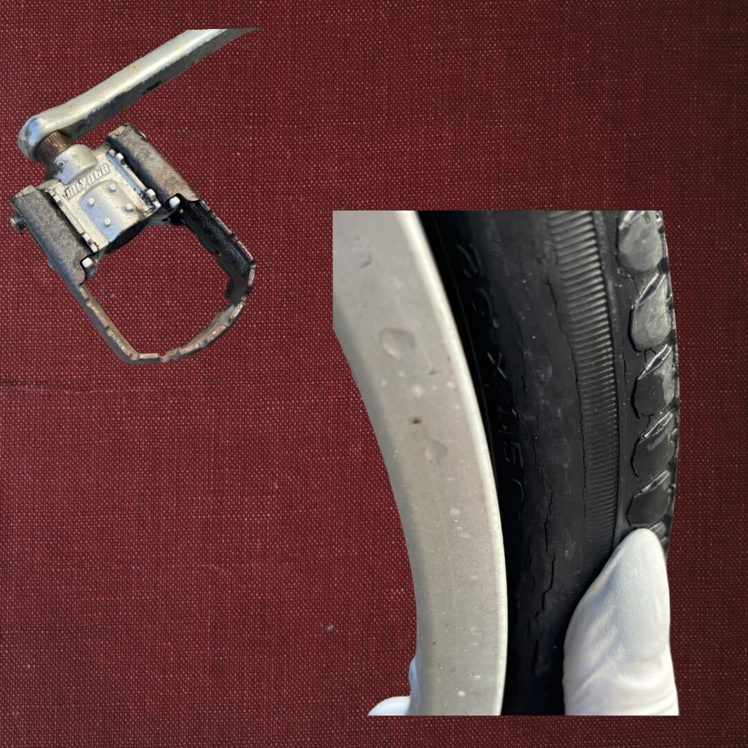 前後のタイヤが使えません。自転車にはサビもある為ジャンク品としての出品です。
