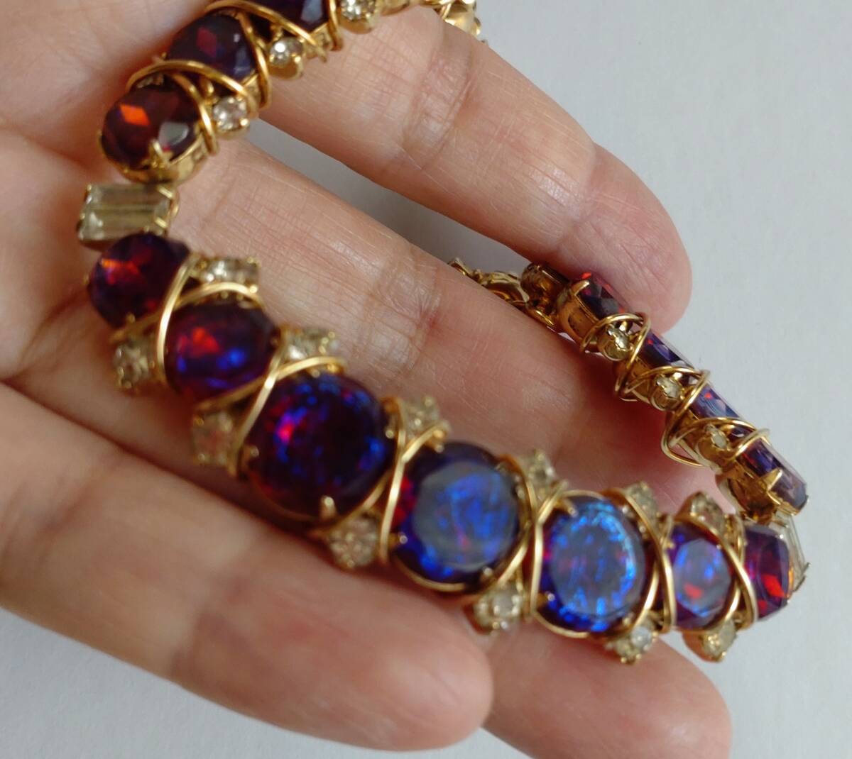ドラゴンズブレスのようなブルーシラーが輝くカボションをメインに、クリスタルのラインストーンがアクセントとなって、とても素敵なアクセサリーだと思います。