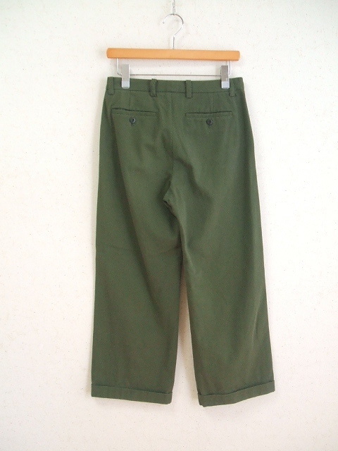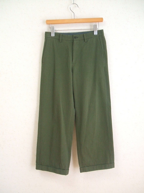 | 実寸サイズ | ウエスト:約74cm 股上:約27cm 股下:約63cm ワタリ幅:約29.5cm 裾幅:約24.5cm 備考 【パンツ】 ウエスト:直線で計測したウエストの2倍の数値 股上 : ウエストの前の部分から股の縫い目までの数値(※正式には前股ぐりという部分になります) 股下 : 股の縫い目から裾までの数値 ワタリ幅:太股の付け根部分を横に伸ばし一番広い部分を計測(※股の縫い目の交差する部分からではありません) 裾幅 : 裾部分を直線計測した数値 ※記載以外のサイズが合わないことを理由とした返品はできませんので、 記載部分以外で実寸サイズの気になる箇所があれば必ず購入前にご質問ください。 |