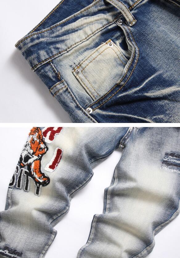 人気品パンツ デニムパンツ 刺繍 ジーンズ ジーパン スキニーパンツ メンズ*新品 ストレッチ バイクジーンズ ボトムス サイズ選択可