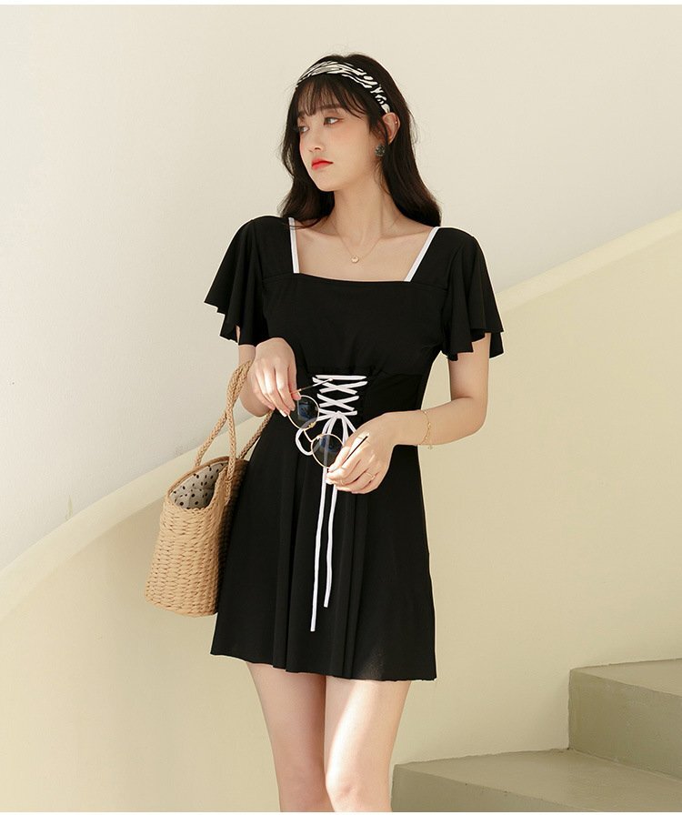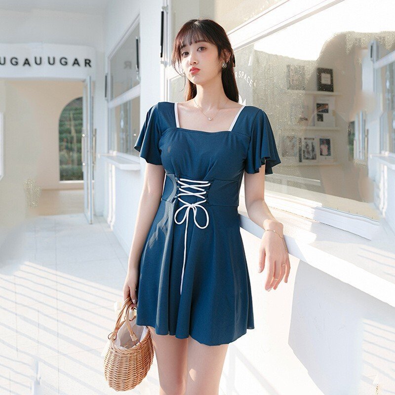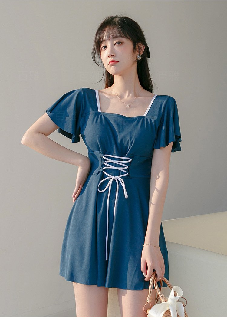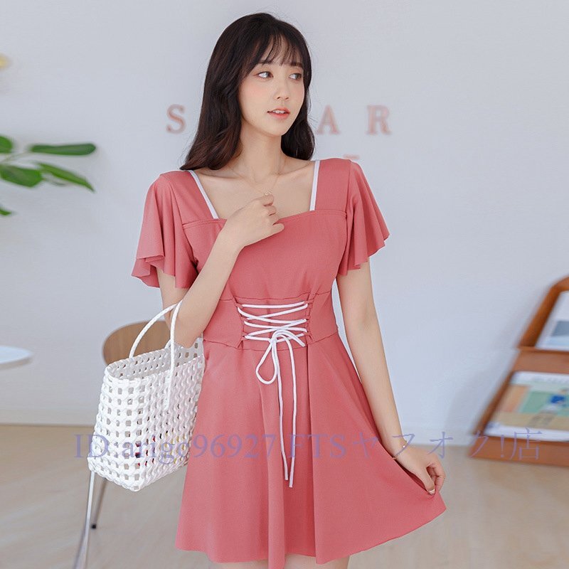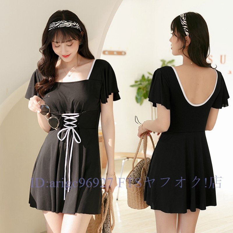 B0509☆新品夏物 お色選択可 ビキニ 水着 海 プール 無地 スクエアネックワンピース水着 スカート スイムウェア 袖フリル 3XL ブルー