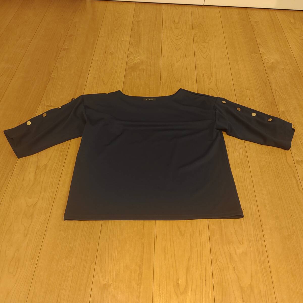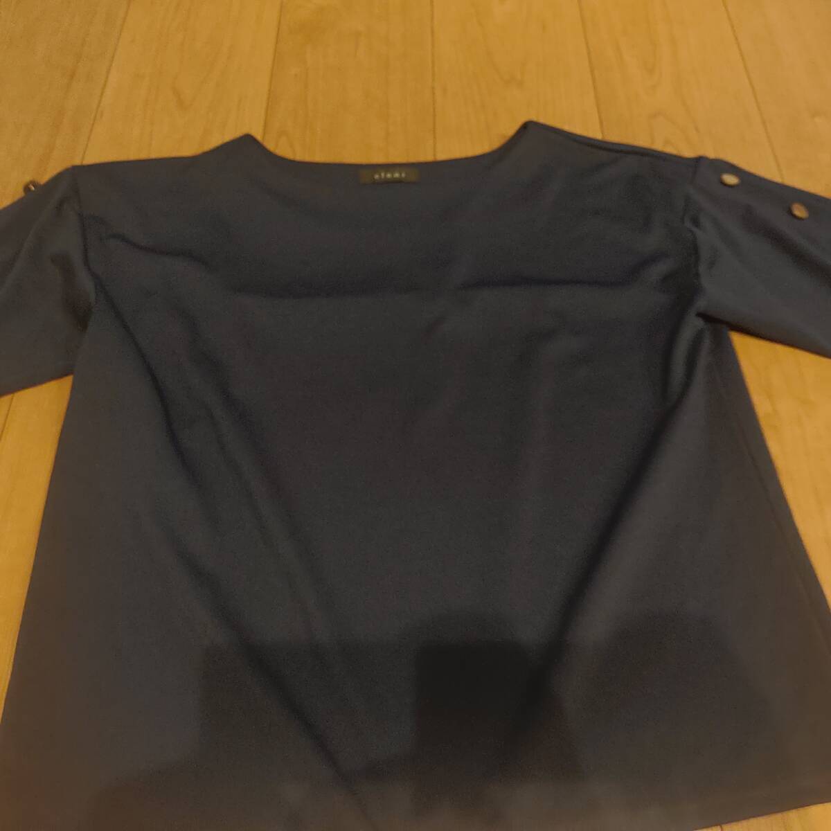 クリア clear 金ボタン デザイン 五分袖 カットソー F ネイビー 紺 です。