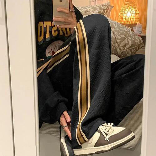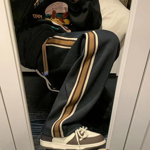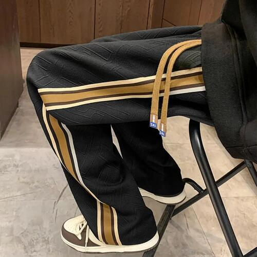 ジャージパンツ メンズ サイドライン おしゃれ 白 黒 レトロ カジュアル 無地