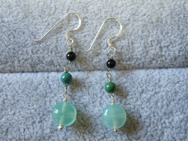 R00007.カラーストン シルバー925 ハンドメイド ロングピアス