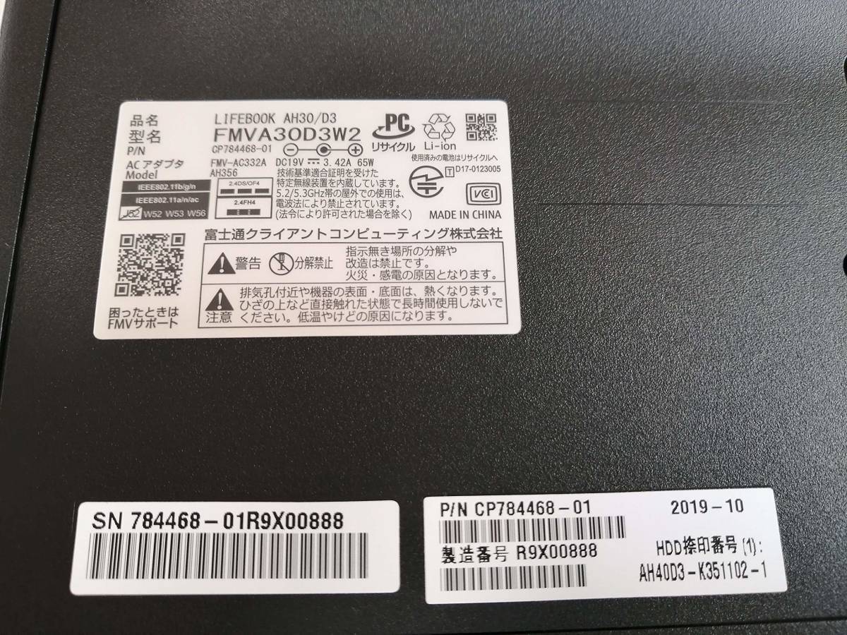 【飛脚便100】極美品 富士通 FMV LIFEBOOK AH30/D3 FMVA30D3W2 Win10Home64bit SSD256GB 4Gメモリ ノートパソコン アーバンホワイト[h4765]