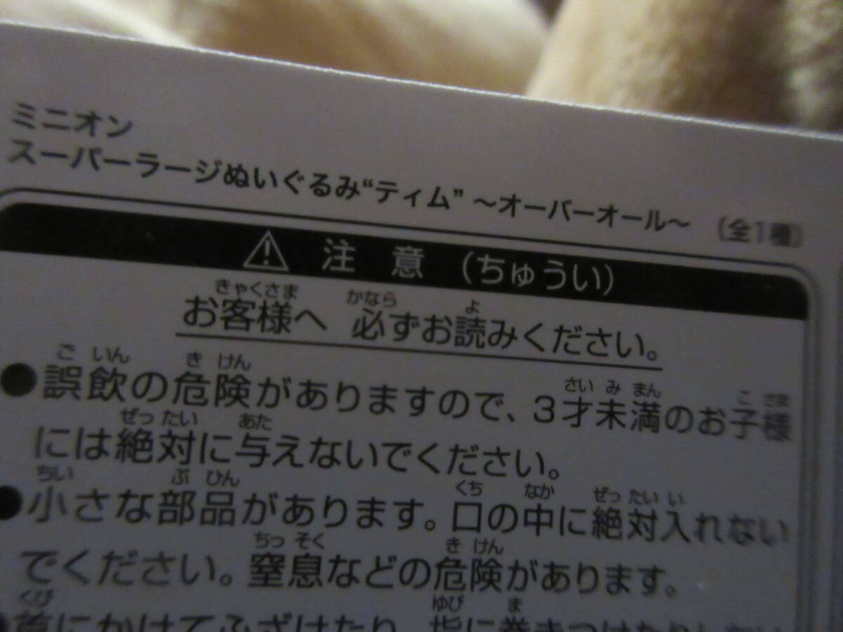 ミニオン スーパーラージ ぬいぐるみ ティム オーバーオール」 です。