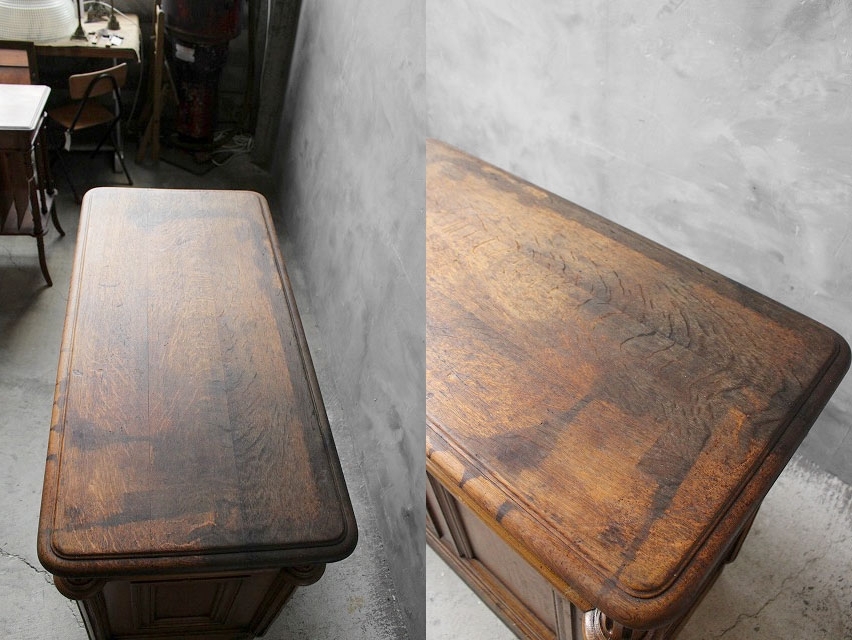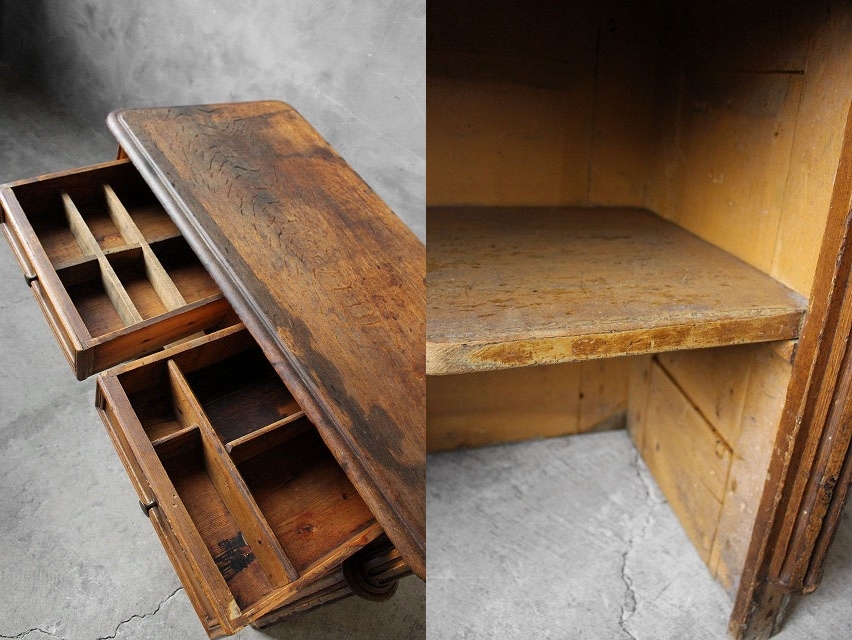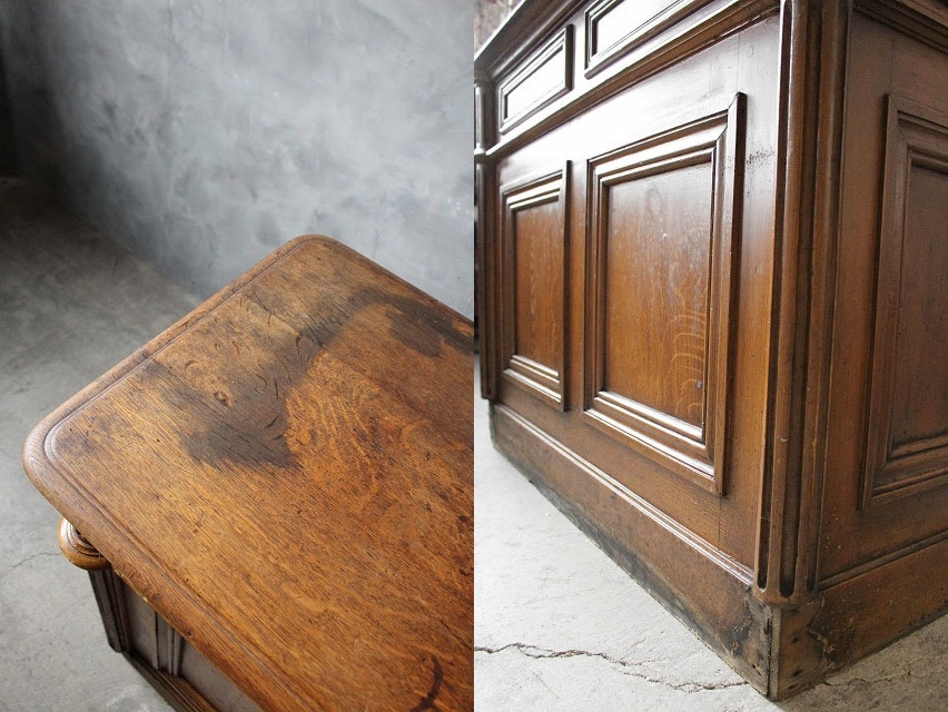 商品説明 岡山STAGEから出品します。フランスで買い付けましたウッドカウンターです。経年を経た木の風合いとフランスならではのデザインフォルムが大変良い雰囲気です。内側にはスペースがあり、ぜひショップ等の実用兼ディスプレイとしてお使いください。状態ですが、虫食い穴が複数個所ありますが、防虫加工を施してあります。その他、経年による木質収縮による隙間や木質劣化、錆等の金属特有の劣化、塗装劣化、小傷や擦れ、打痕跡や引っ掻き傷、汚れ、補修箇所、木かけや木割れ、若干の歪み、パーツ欠損等といった使用感はありますが雰囲気を損なうような目立つダメージもなく問題ない状態かと思います。ただあくまでアンティークですのでご理解いただける方のご購入をよろしくお願いします。 サイズ 高さ約81cm、横幅約107cm、奥行き53cmになります。 発送方法 ヤマトのらくらく家財宅急便のCランクで行います。(らくらく家財宅急便は集荷が予約制になりますので、発送はご入金確認後に最短2日後〜になります。) コメント 店頭でも販売しております。タッチの差で売り切れた場合はご了承下さい。よろしくお願いします。 STAGEホームページ https://www.stage-stage.com/ |