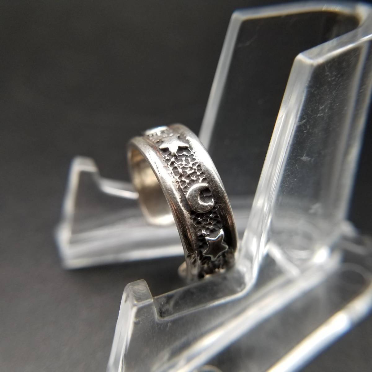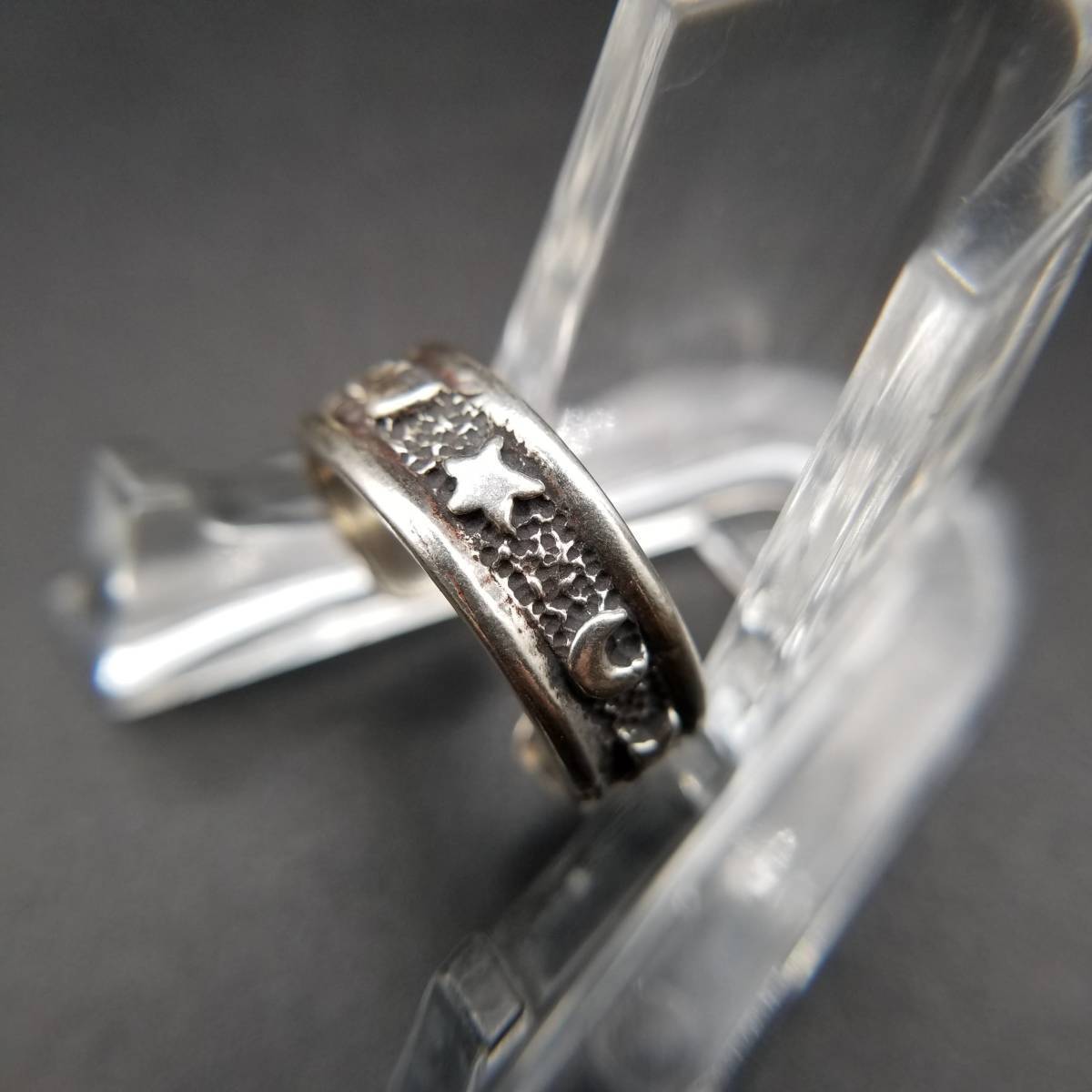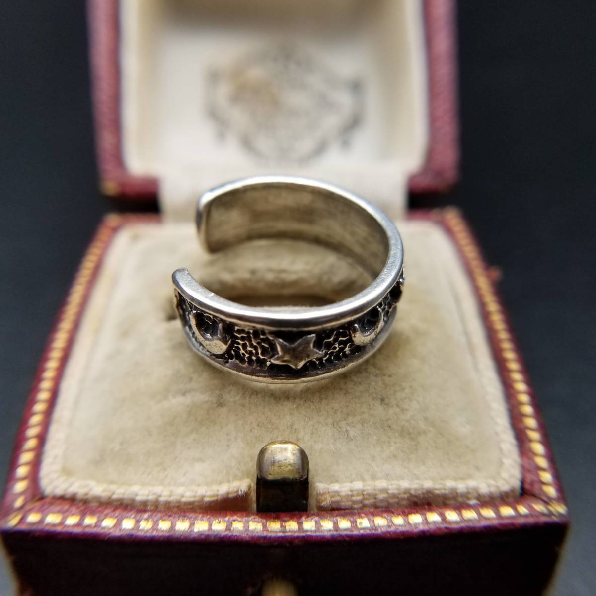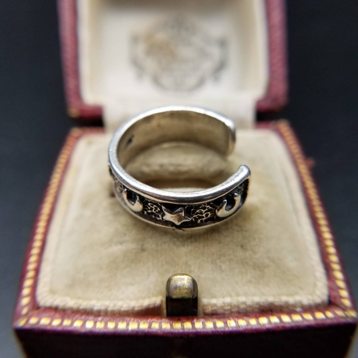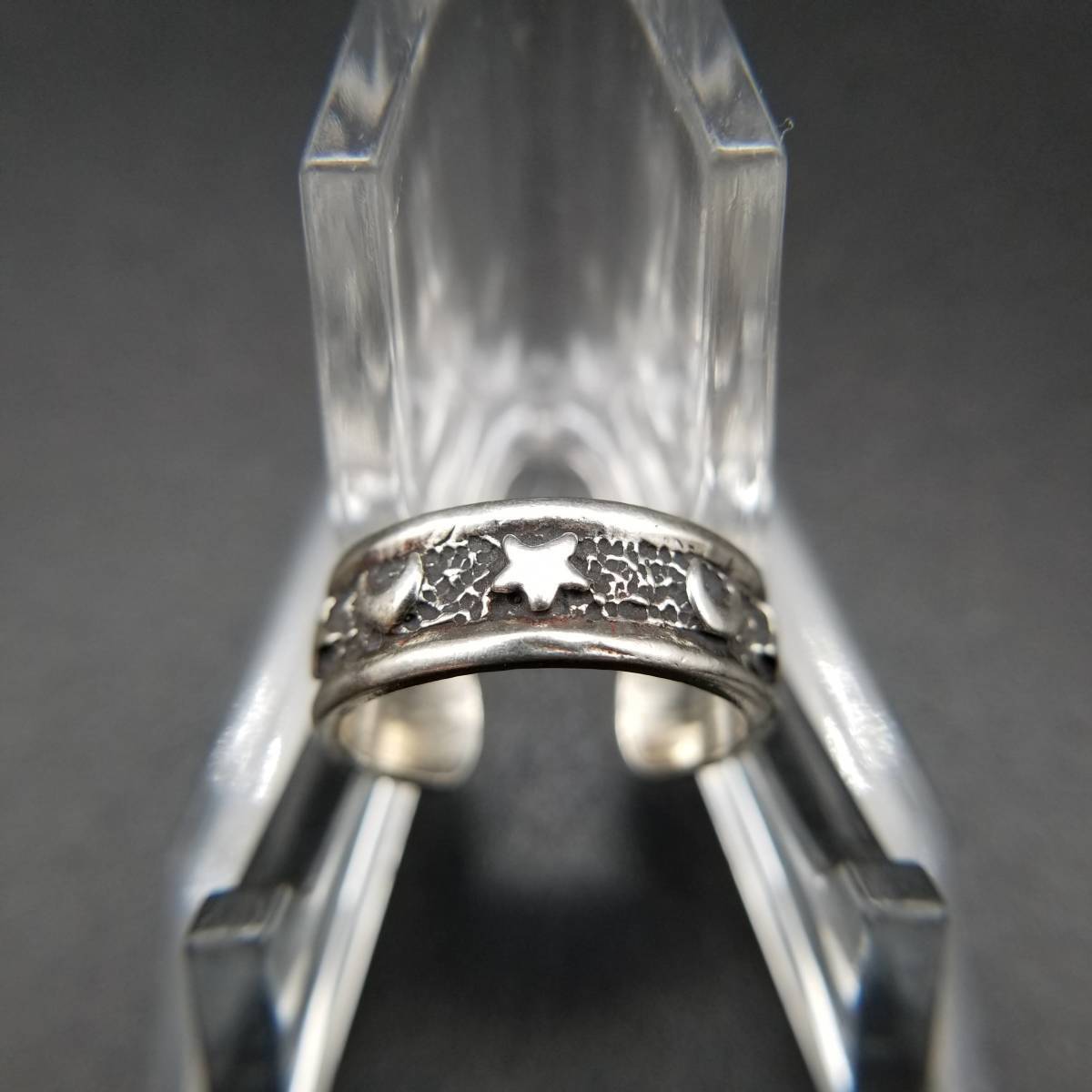 Moon & Star 星と三日月 925 シルバー ヴィンテージ カフリング 銀 レトロ バンド 指輪 ユニセックス Y12-B