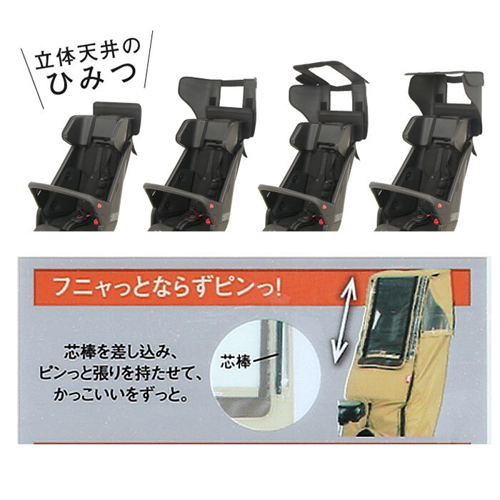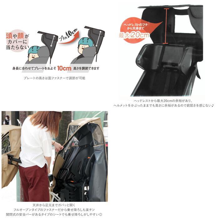 商品説明 | ・・マイルームのようなしっかり空間を作れる「Dスタイル02 スウィートレインカバー 後用」が登場。 ・芯棒と3つのプレートで崩れにくいしっかり構造。さらに成長に合わせて約10cmまでプレートを面ファスナーで高さ調整できる。 ・ヘッドレストから最大20cmの余裕があり、ヘルメットをかぶったままでも高さに余裕があるので窮屈さを感じない♪ ・天井から足元までガバッと開くフルオープンタイプのファスナーだから乗せ降ろしも楽チン。開閉式の安全バーがあるタイプのシートでも乗せ降ろしがしやすい◎ ・前面の透明窓はファスナーで開閉ができ、開いた窓は背面のボタンで固定できる。また背面のファスナーも開くので風の通り道ができ、夏の蒸し暑い時でも蒸れにくい。 ・左右にも透明窓が付いており外が見えやすくなることでお子様の圧迫感軽減になる! ・背面には透明窓の固定ボタンの他に、テールライトを固定できるベルトと小物を収納できるポケットを配置。さらに夜間や雨の日の走行時に周りからの視認性を高めてくれる反射マーク付き。 ・突然の雨でも安心の撥水加工済み。雨の日の幼稚園、保育園への送迎に大活躍のアイテム。 |
