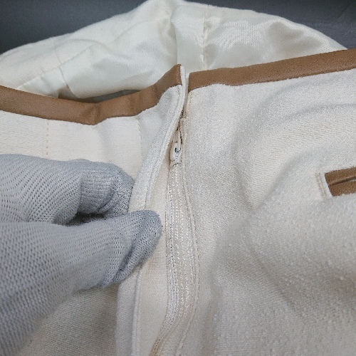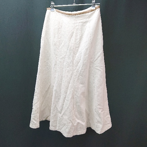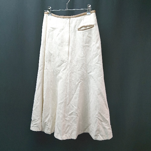 ◇ EMMEL REFINES パイピング デニム風生地 カジュアル ロング フレア スカート サイズM アイボリー レディース E