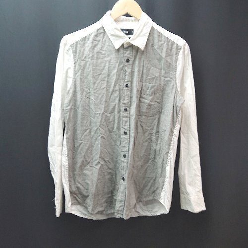◇ HARE ハレ コットン100% 切り替えデザイン フロントボタン 大人っぽい 長袖 シャツ サイズL グレー メンズ E