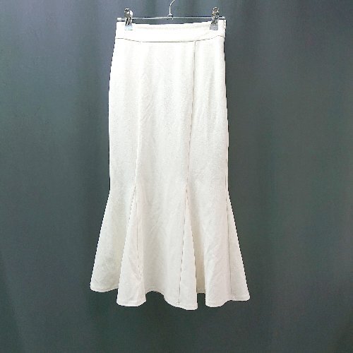 ◇ GU サイドファスナー バックウエストゴム 裏地あり ロング マーメイド スカート サイズS ホワイト レディース E