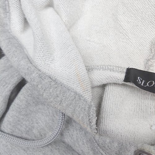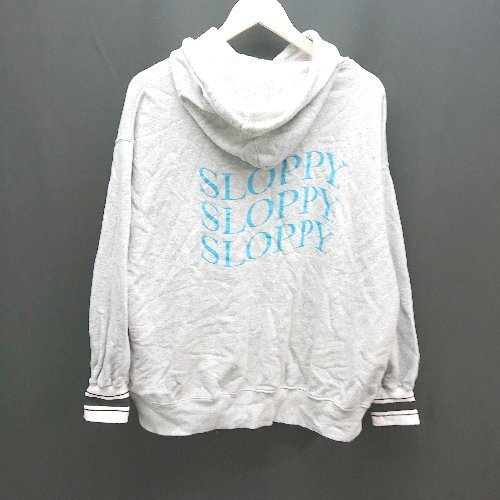 ◇ SLOPPY フード付き プルオーバー 薄手素材 ブランドロゴ 長袖 トレーナー サイズFREE グレー レディース E