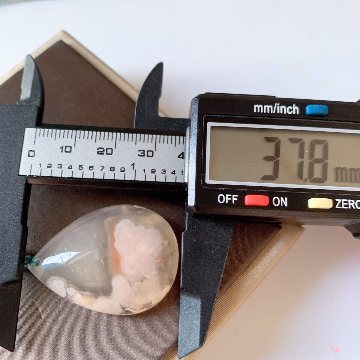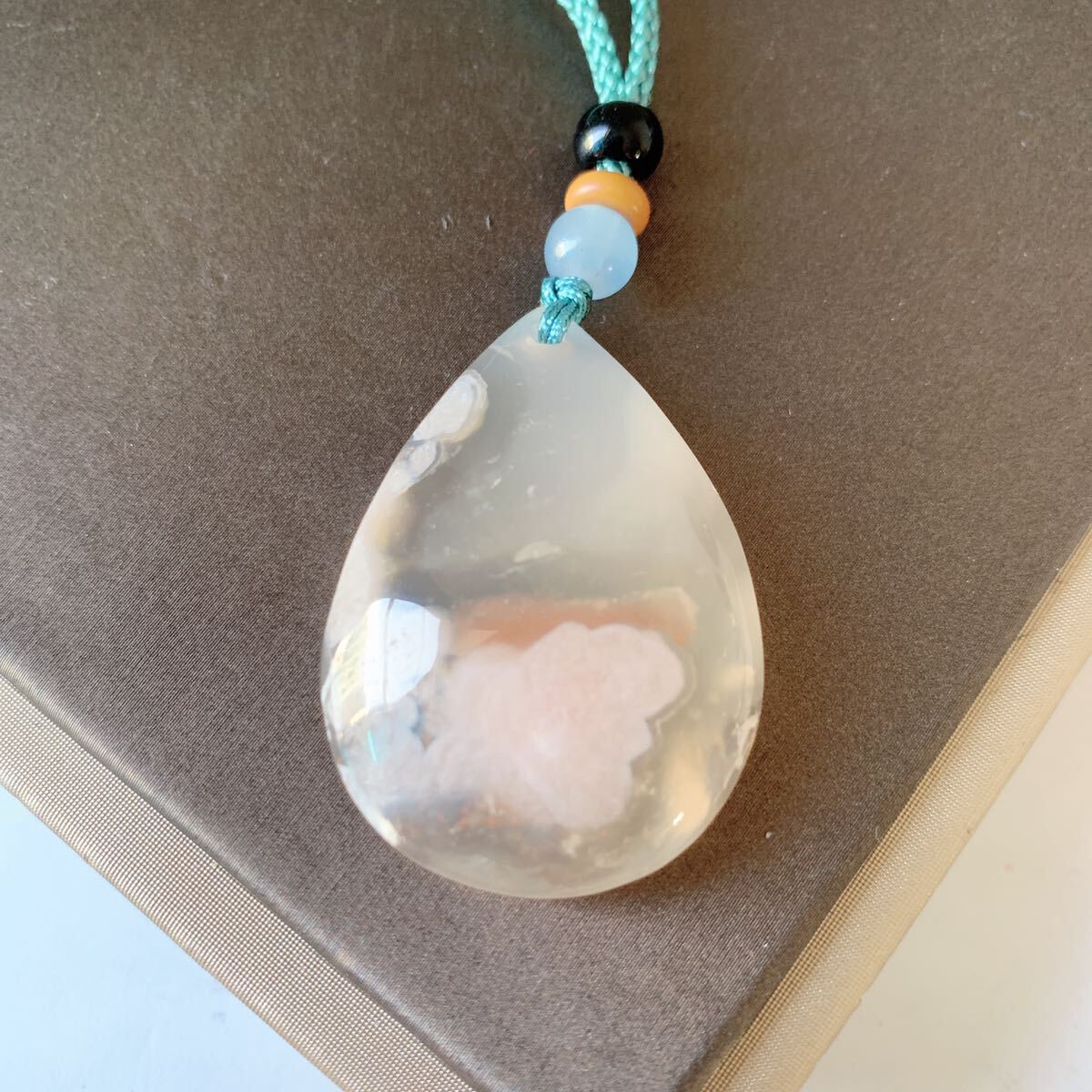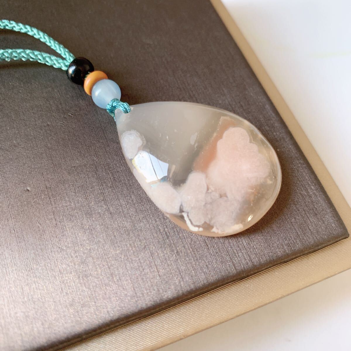 淡い透明感のあるピンクのアゲードの中にまるで桜の花が咲いてるかのように見えるパワーストーンです