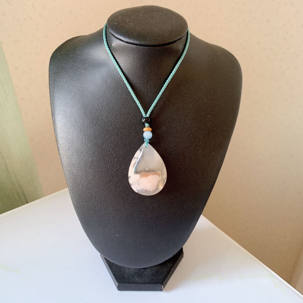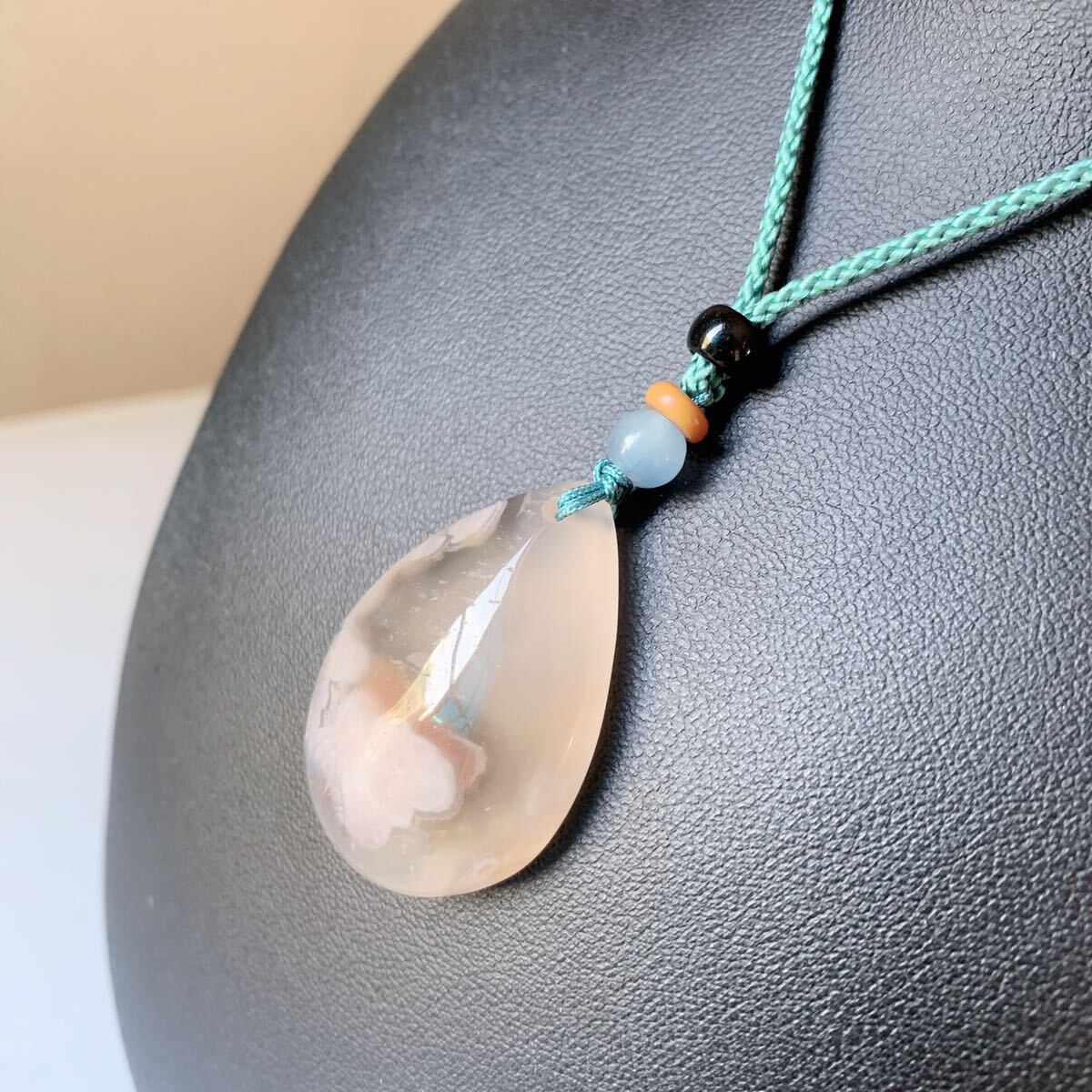 ◇桜瑪瑙(チェリーブロッサムアゲート)◇ネックレス◇ペンダント◇水滴形◇天然石◇パワーストーン◇巾着袋付◇020P60501