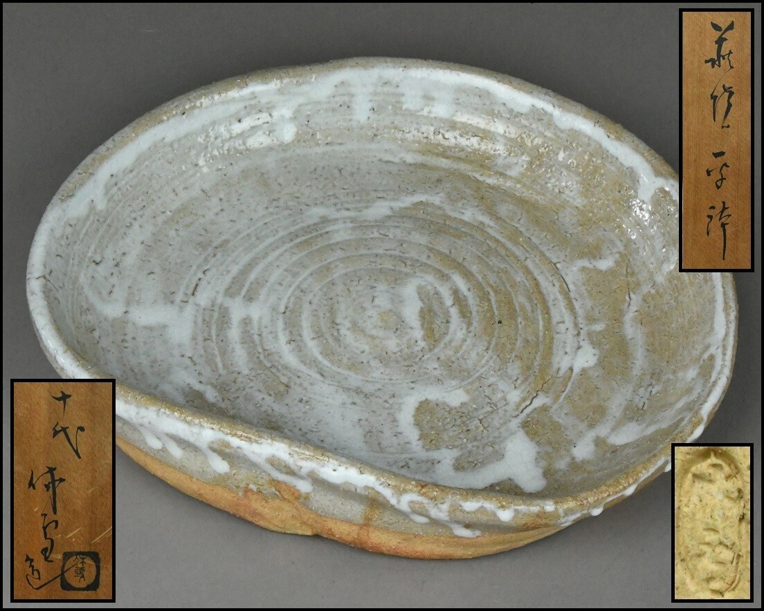 商品説明+++《品 名》:人間国宝【十代 三輪休雪】萩焼平鉢 共箱 茶道具