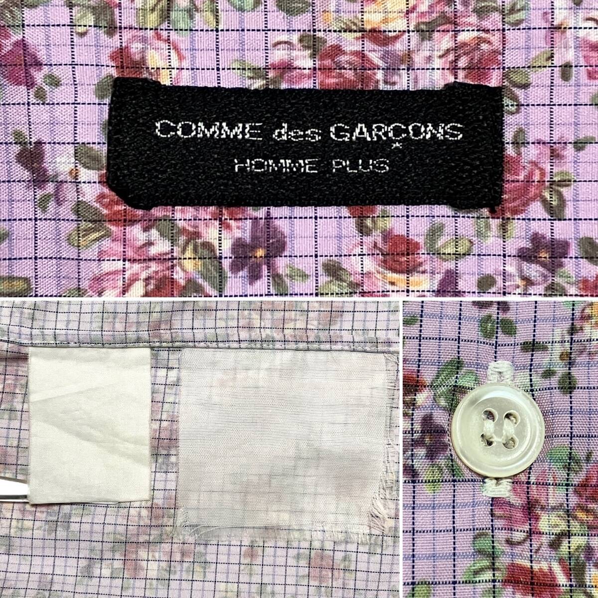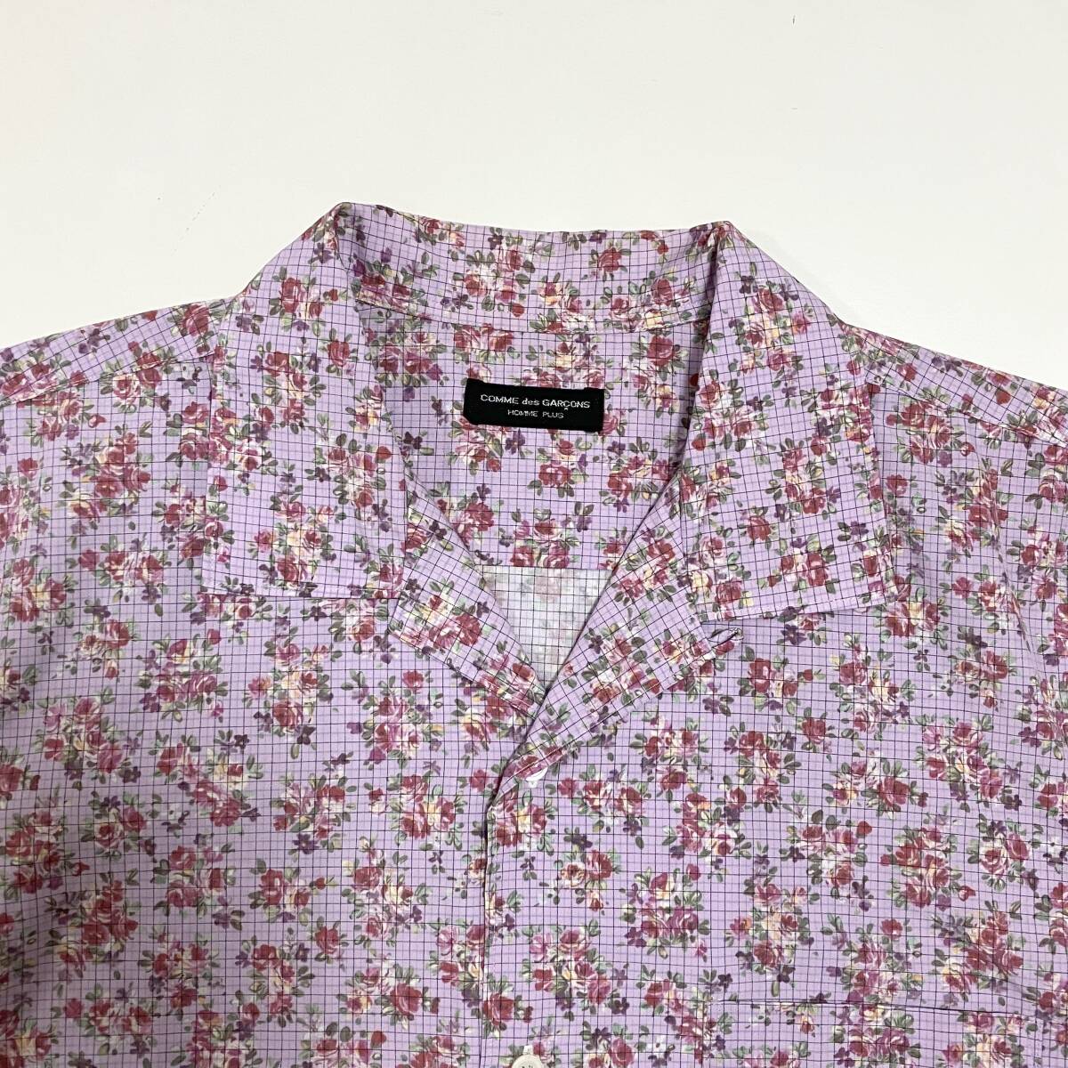 80s 90s コムデギャルソンオムプリュス 花柄 チェック 半袖 オープンカラー シャツ HOMME PLUS 開襟 VINTAGE archive 4050389