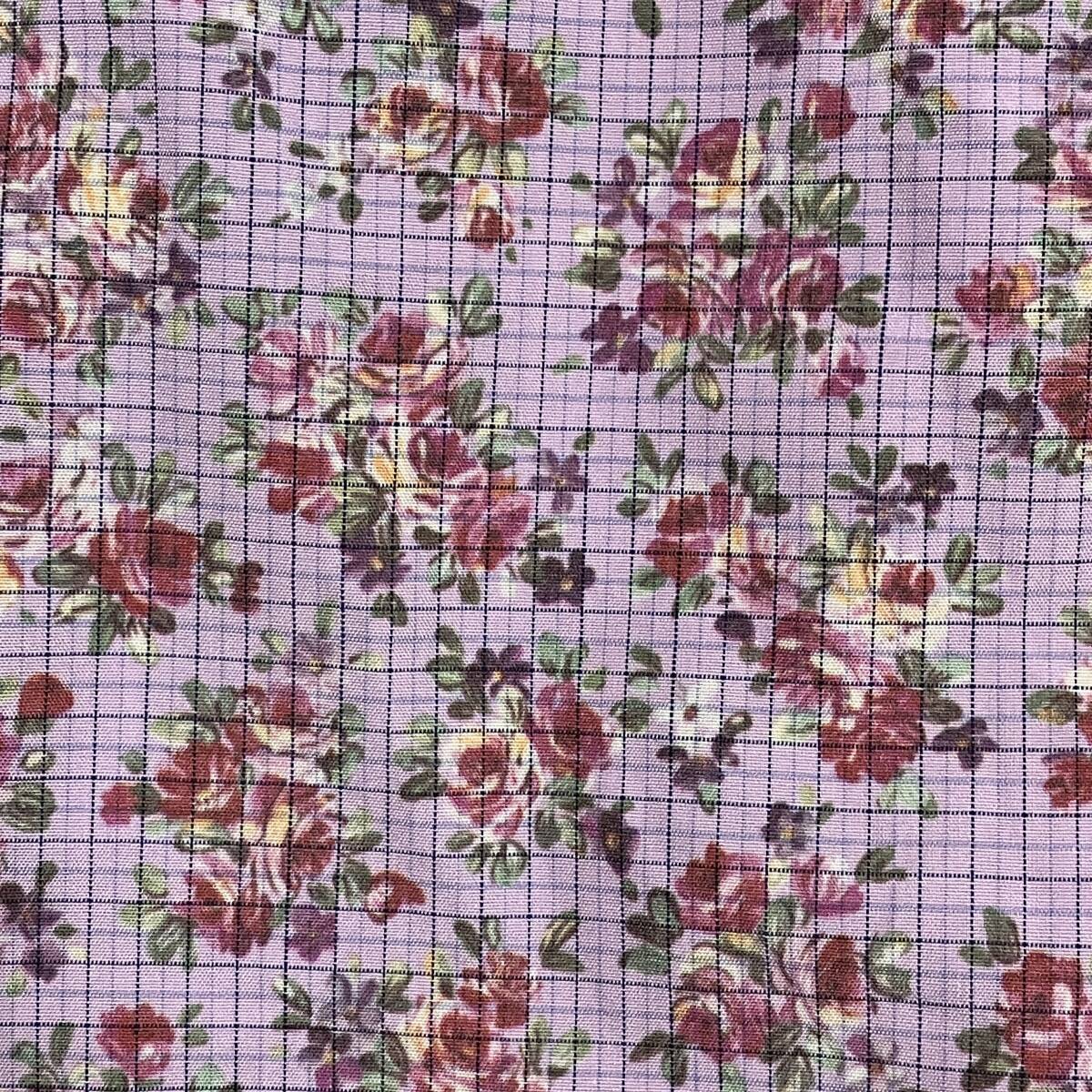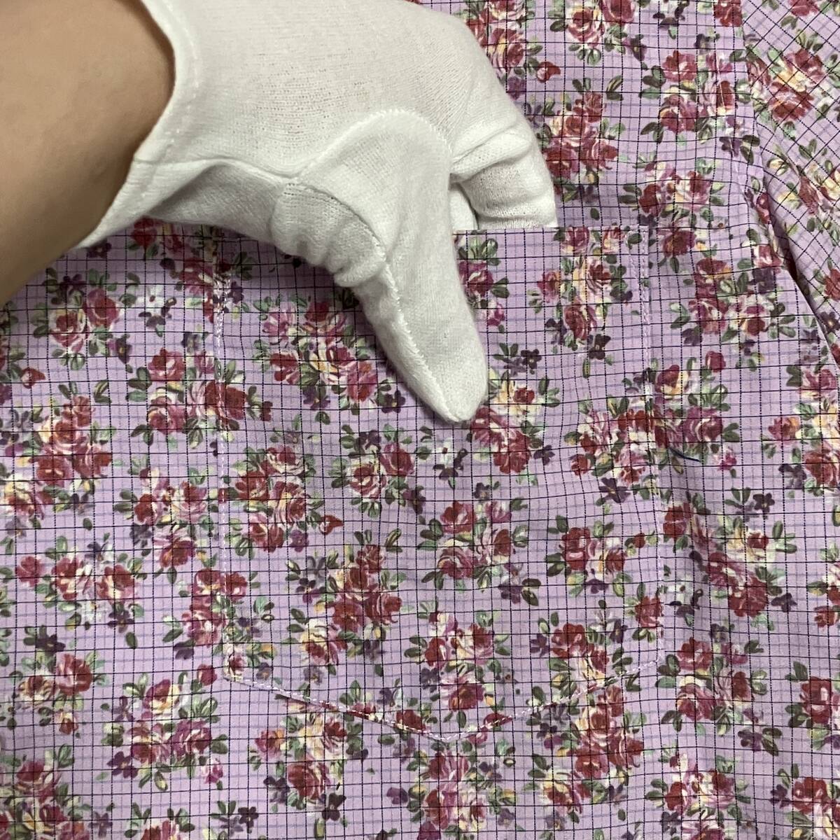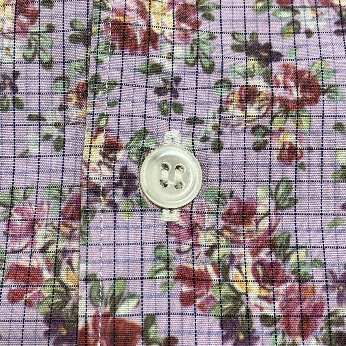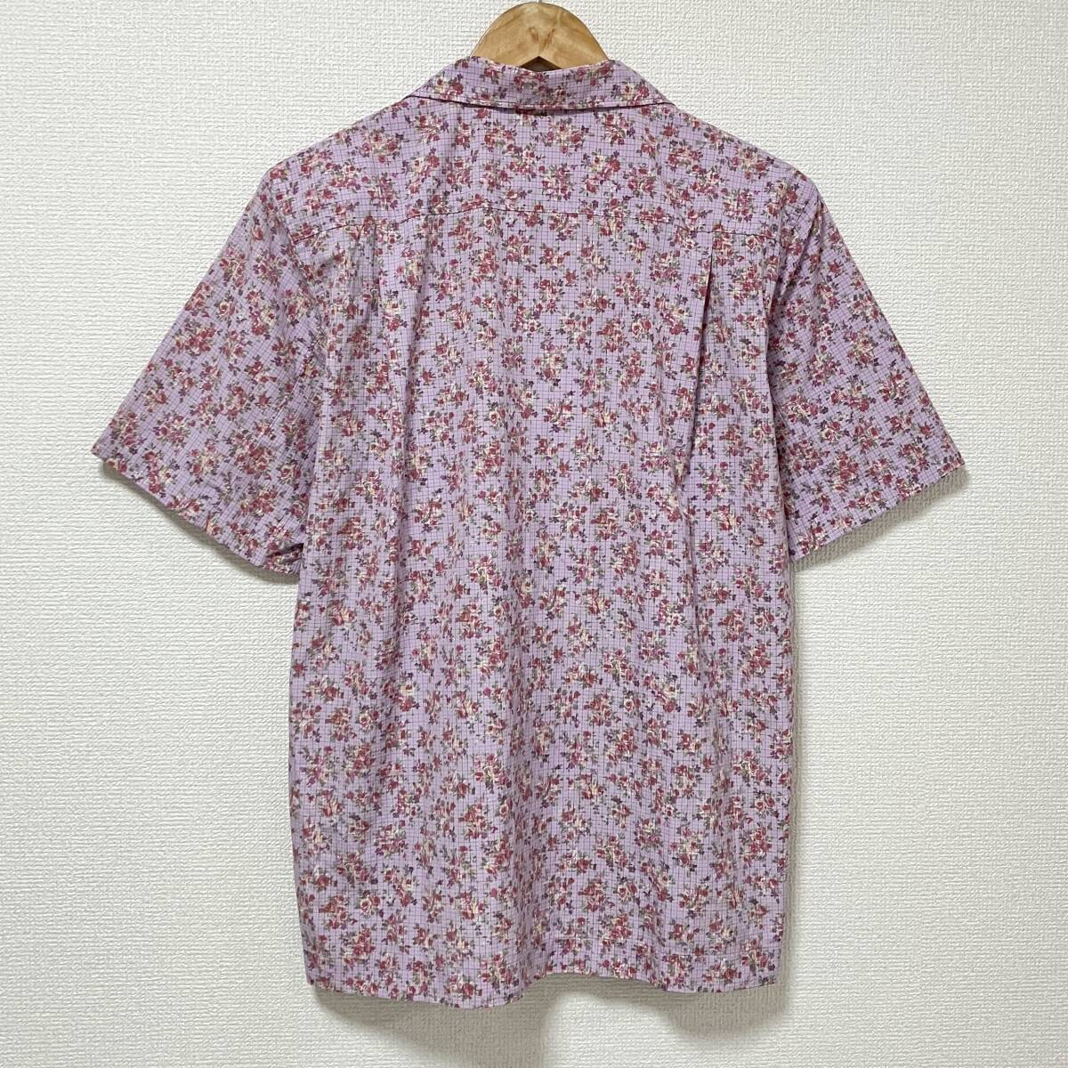 80s 90s コムデギャルソンオムプリュス 花柄 チェック 半袖 オープンカラー シャツ パープル系