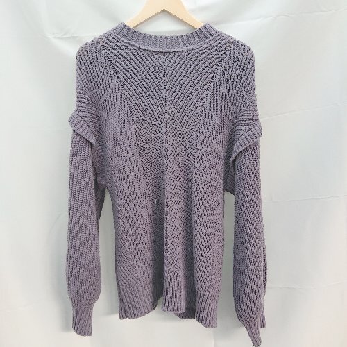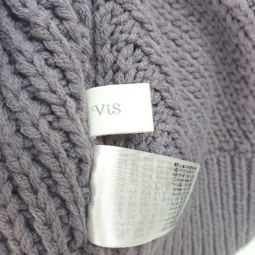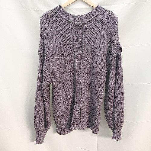 ◇ ViS ビス フロントボタン ニット クルーネック 長袖 カーディガン サイズF パープル レディース E