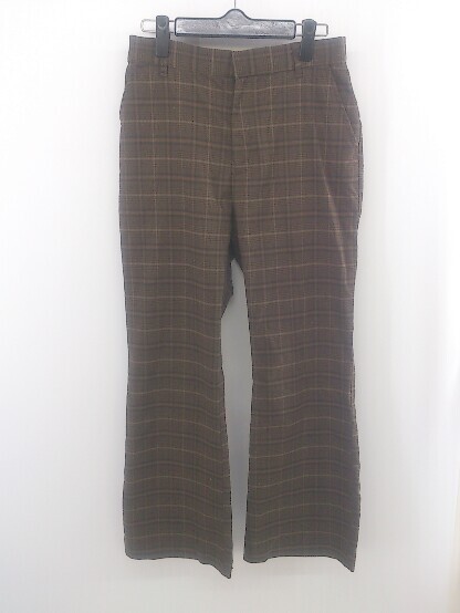 ◇ earth music&ecology チェック フレア パンツ サイズ M ブラウン マルチ レディース E