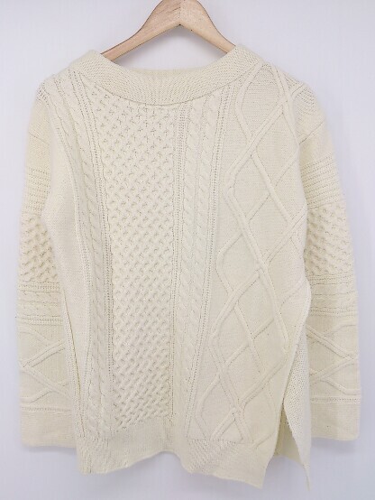 ◇ nano universe ナノユニバース スリット 長袖 ケーブル ニット セーター サイズ38 アイボリー レディース P