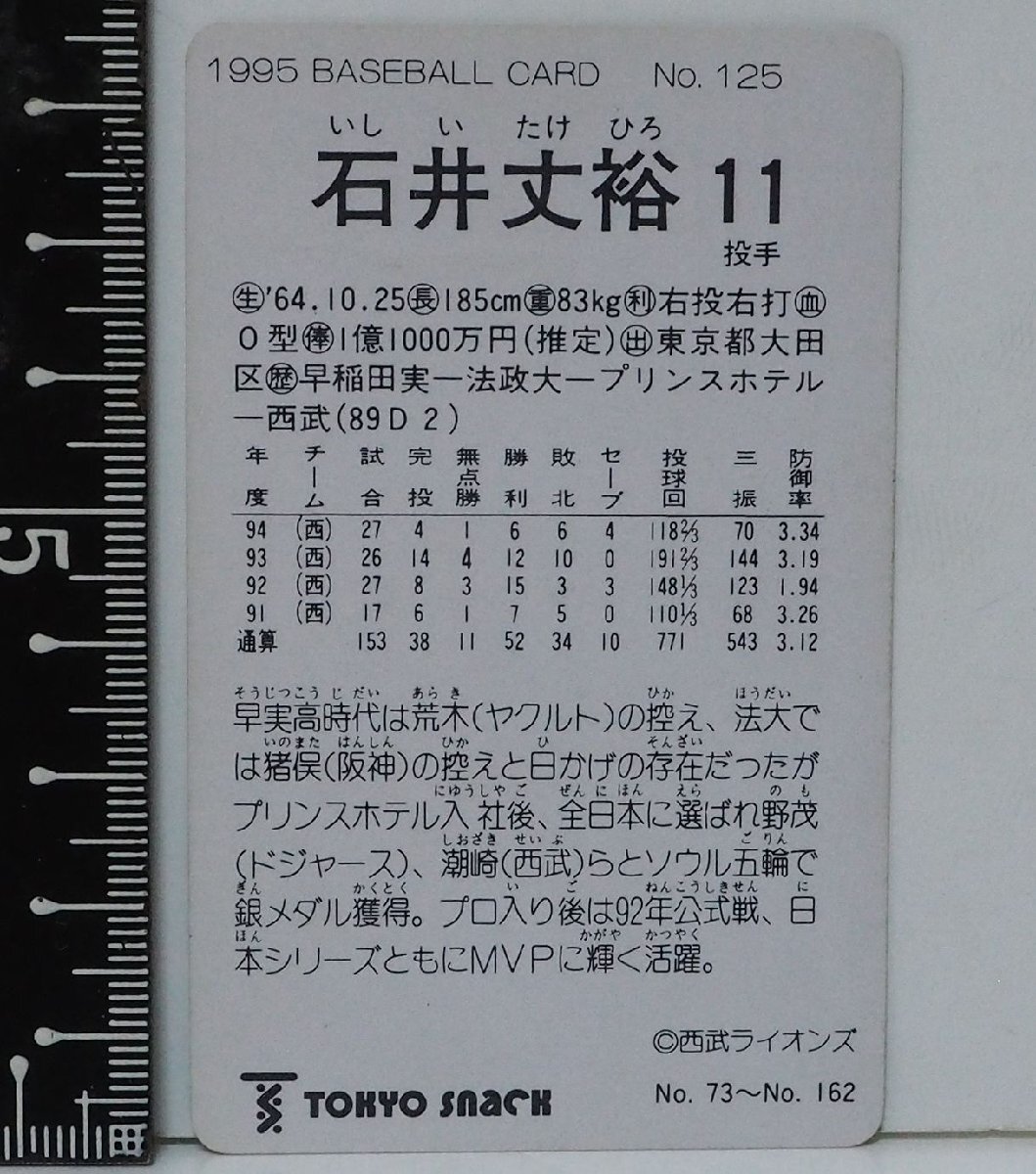 95年カルビー東京スナック プロ野球カード レアブロック No.125【石井 丈裕 投手 西武ライオンズ】平成7年 1995年 当時物Calbeeおまけ食玩
