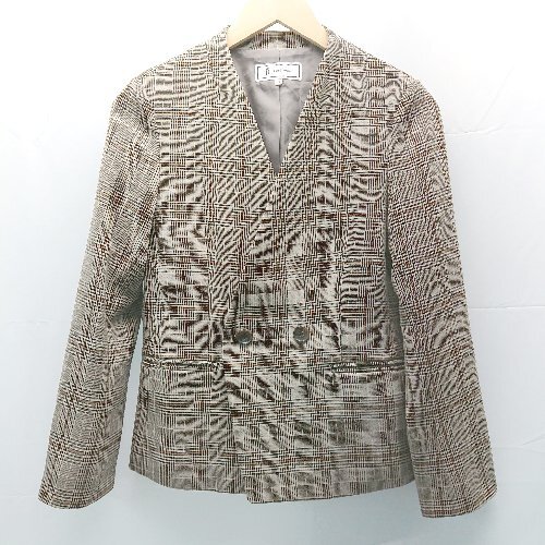 ◇ ROPE PICNIC ロペピクニック チェック柄 綺麗め 長袖 ジャケット サイズ36 ブラウン レディース E