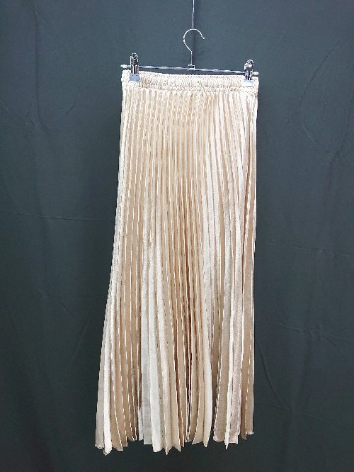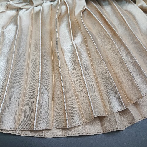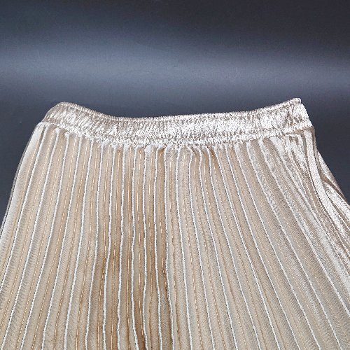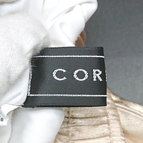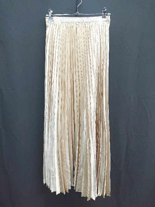 ◇ CORNERS コーナーズ ウエストゴム 裏地 プリーツ 光沢感 ひざ丈 フレア スカート サイズM ゴールド系 レディース E