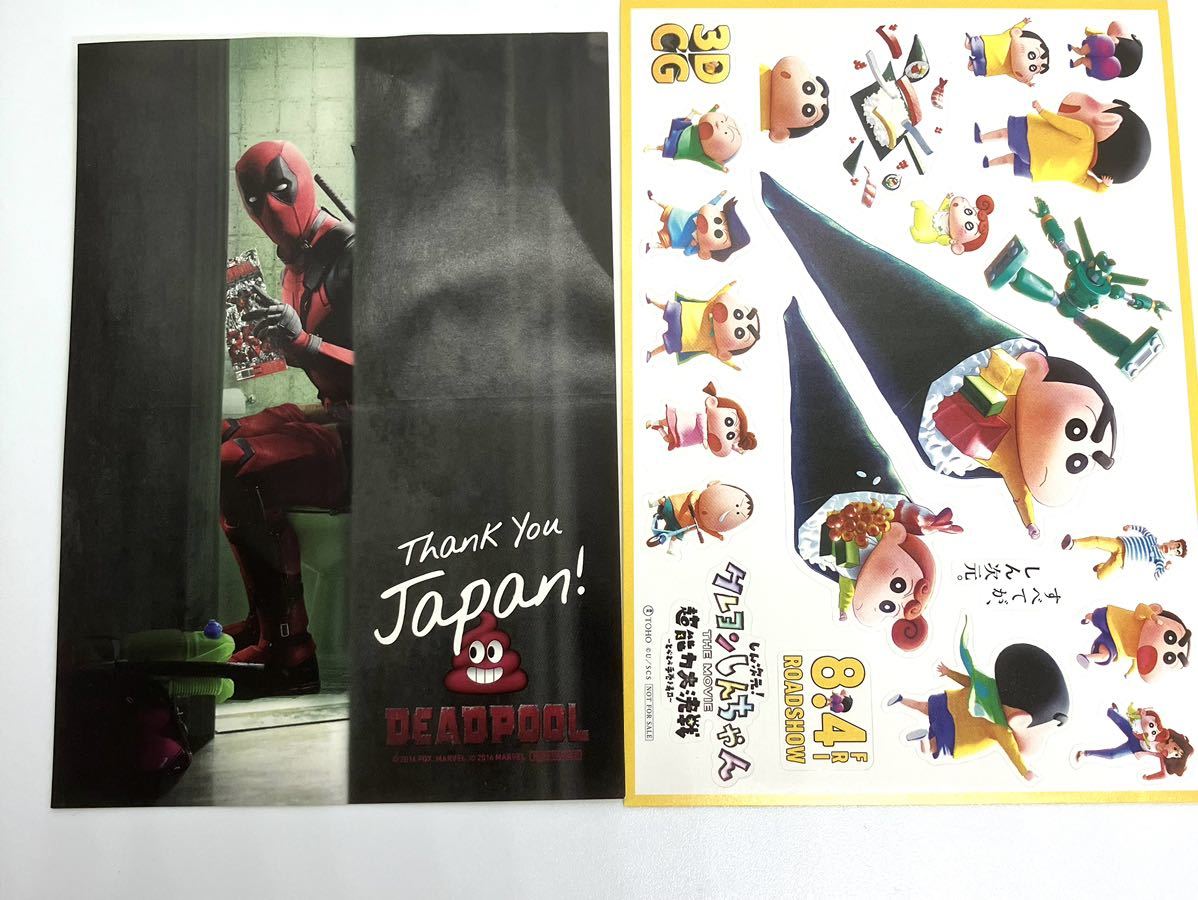 デッドプールは映画DEADPOOLの入場者特典のシールステッカーで未使用です。ポストカードくらいのサイズとなります。写真の通り若干ですがオレがついているので、許容できる方のみご購入のほど宜しくお願い致します。