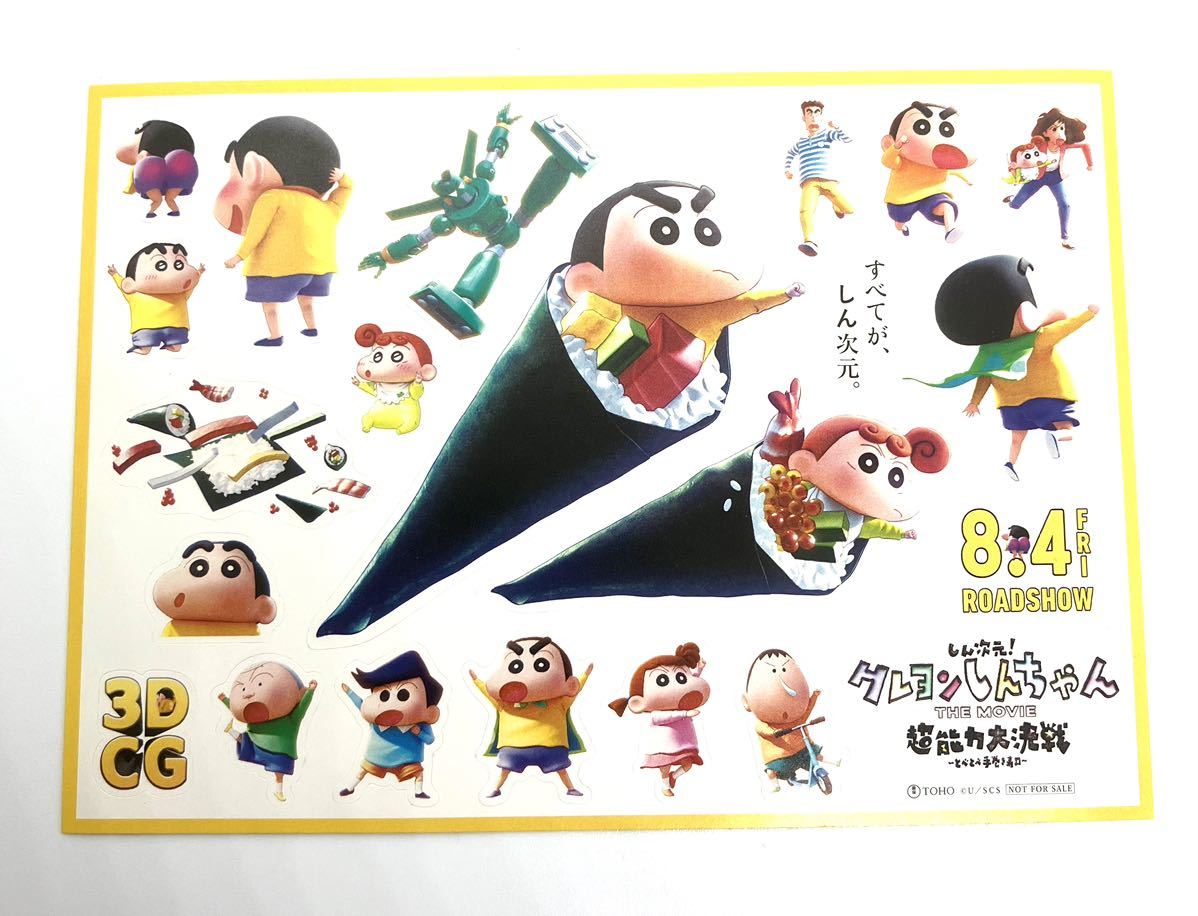 クレヨンしんちゃんは「しん次元!クレヨンしんちゃん THE MOVIE」のシールステッカーで未使用です。ポストカードくらいのサイズです。