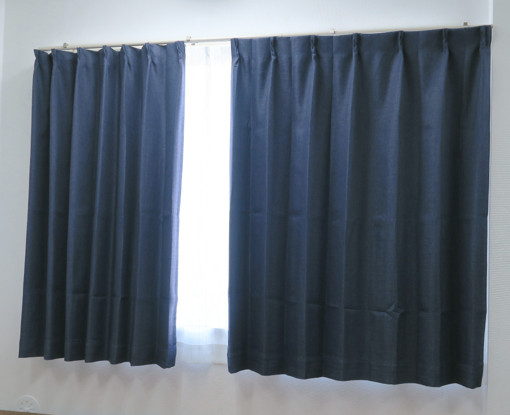 遮光カーテン 幅150cm×丈200cm2枚 y2950 ネイビー 遮光裏地付き 形状記憶加工付 遮光1級 オーダーカーテン 無地 ナチュラル