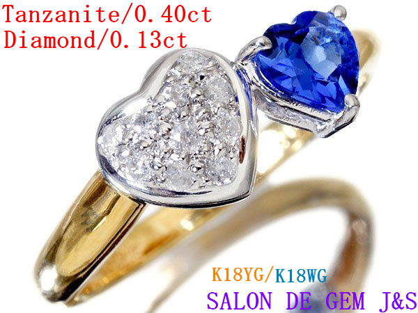 【ソーティング付】【希少宝石!】【K18YG/K18WG:天然高級タンザナイト/天然ダイヤモンド コンビ リング】(TN 0.40ct/D 0.13ct)#11【チャーミング】【現品お届け】【ハードケース付】【赤字大処分】【送料無料】【ラッピング無料】