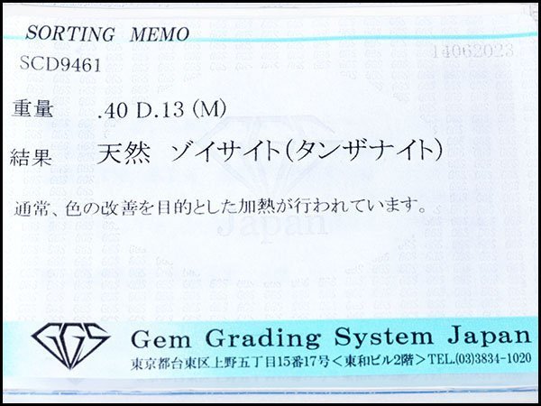 【ジェムグレーディングシステムジャパン】発行のソーティング付属!