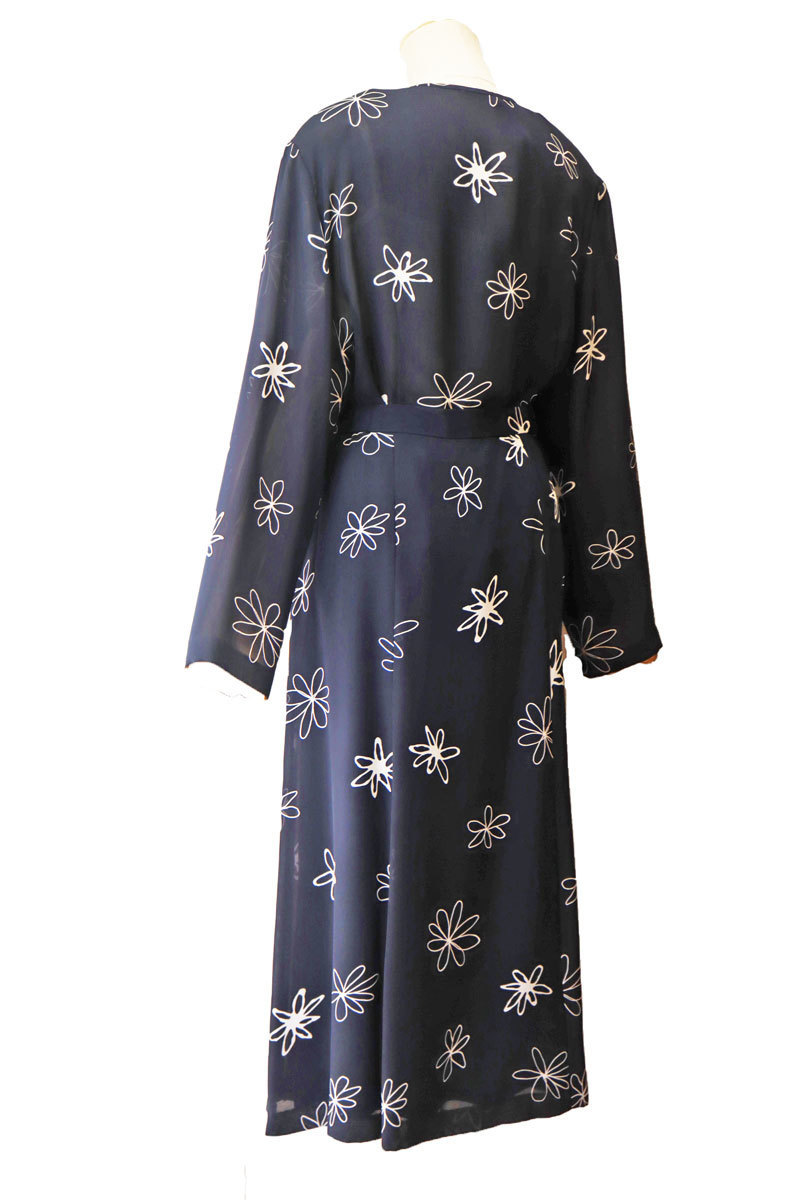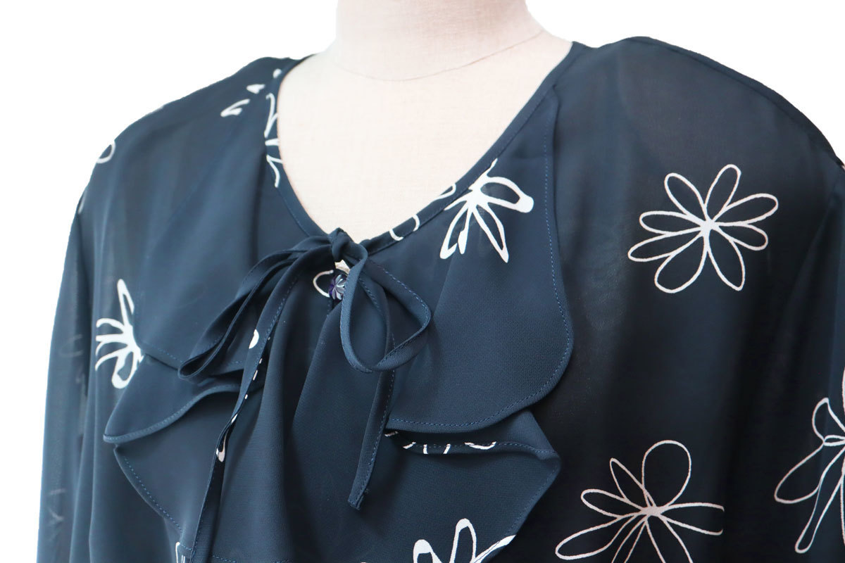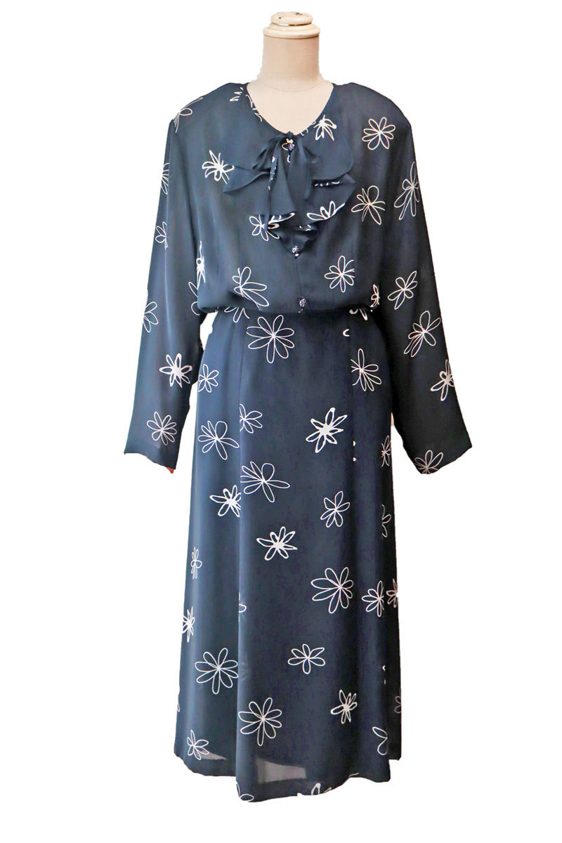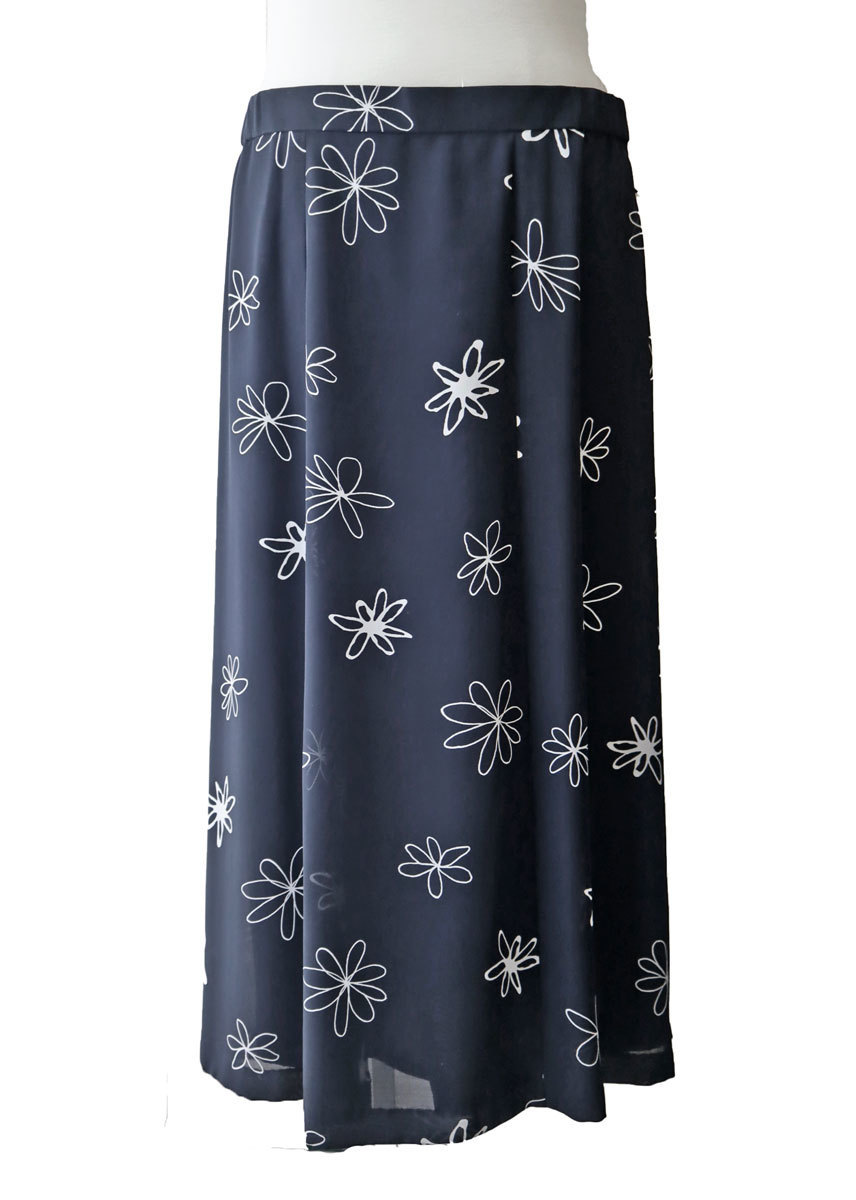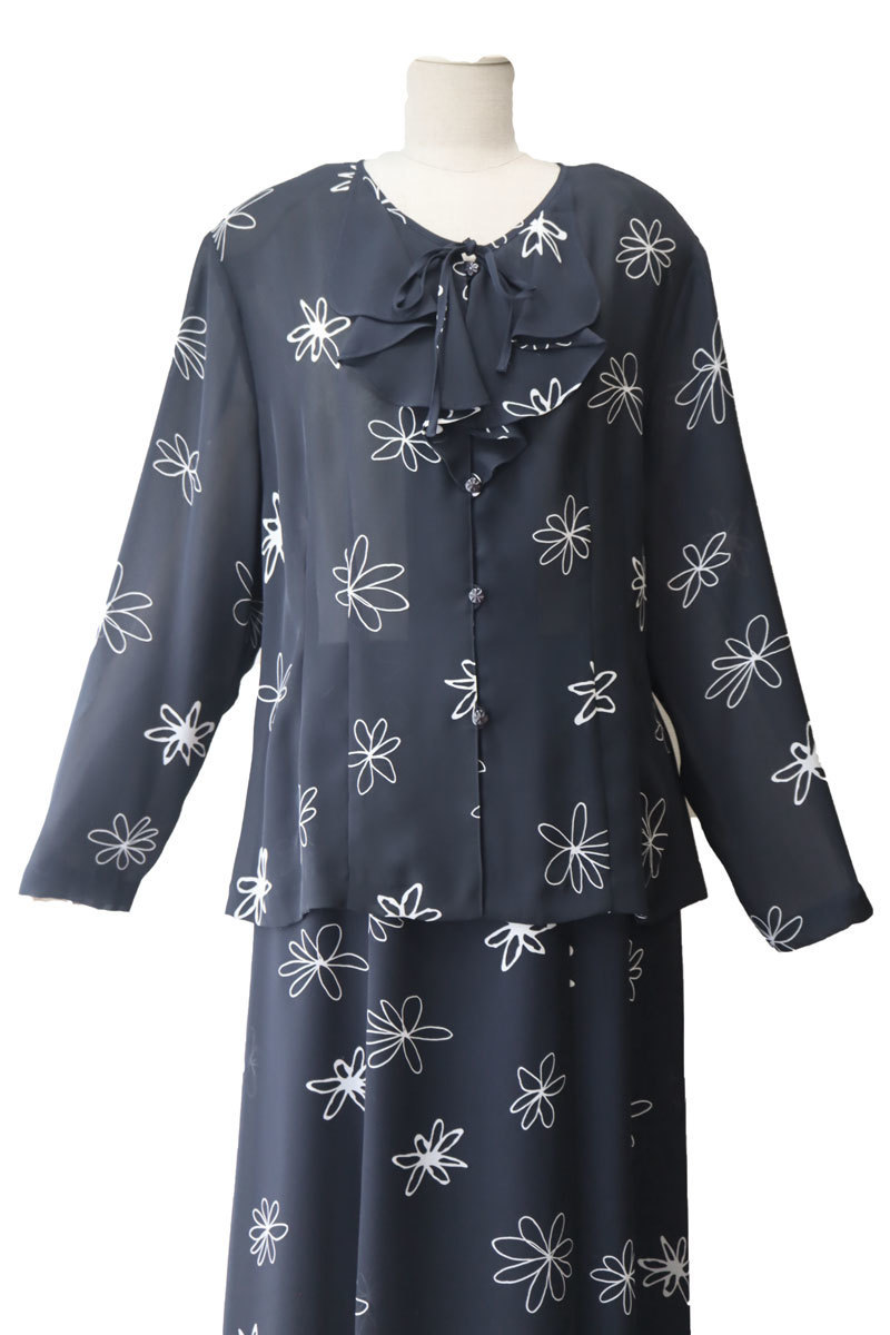 ゆったりサイズの花柄ソフトスーツ。 グンゼ産業 inclube のしっかりとしたお品物。 黒地に線で描かれたお花がかわいいです。