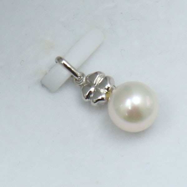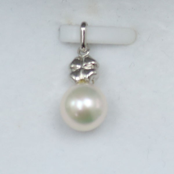 真珠 パール ペンダント あこや真珠 パール ペンダント 四つ葉のクローバー デザイン 7.5mm-8mm ホワイトカラー 冠婚葬祭 K14WG |