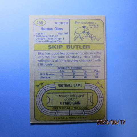 1974 Topps Football #458 Skip Butler (ROOKIE)