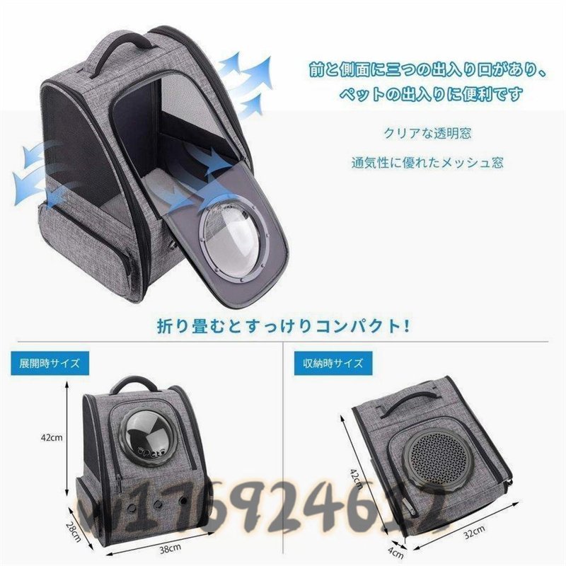 超人気☆犬/猫/小動物適用 キャリーバッグ 折りたたみ大容量 宇宙船型 旅行/通院/ 耐荷重8KG バッグ ペットキャリーバッグ 通気性
