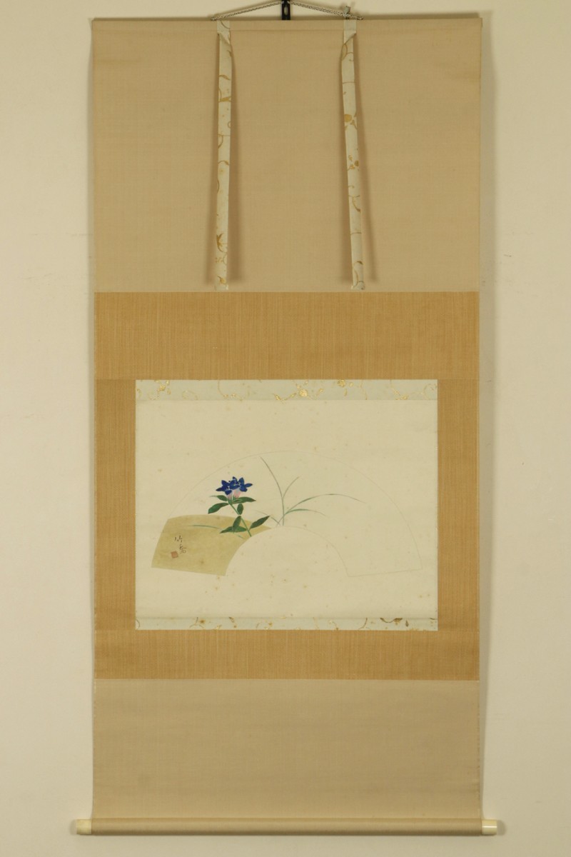 総丈サイズ…横 69 × 縦 145 cm 紙本着色金泥・二重箱入 小野道子箱書 状態…シミ 【印刷ではありません】 【真作】 小野竹喬 明治~昭和の日本画家。岡山県生。名は英吉。竹内栖鳳に師事。京都市立絵画専門学校別科卒。大正7年(1918)、土田麦僊らと国画創作協会を結成、日本画の新しい表現を模索した。帝展・新文展で活躍し、戦後は日展で重鎮となる。京都絵専教授。芸術院会員。文化功労者。文化勲章受章。昭和54年(1979)歿、89歳。 小野道子 小野竹喬の所定鑑定人。 |