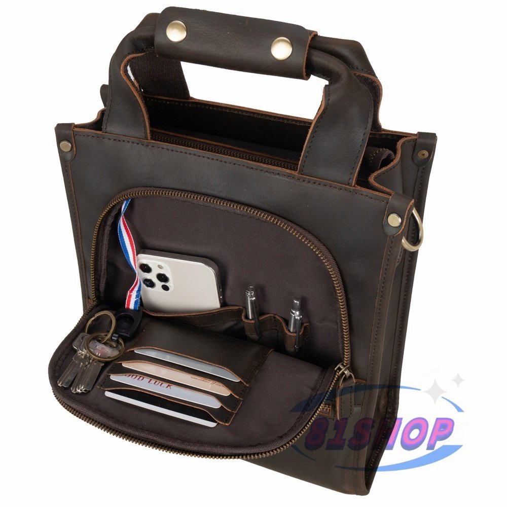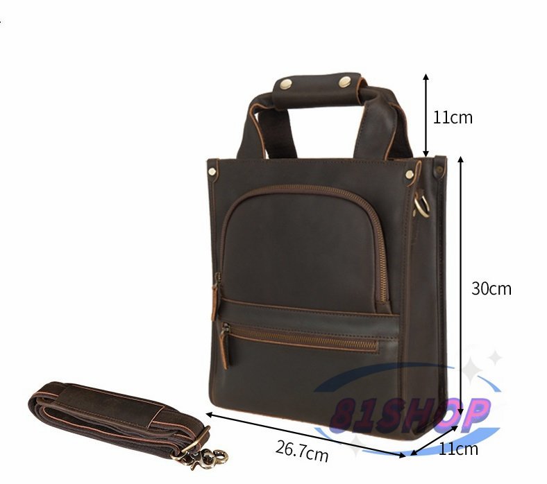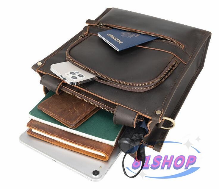 「81SHOP」品質保証☆本革 牛革 11インチIPAD対応 レザー 大容量 多機能 型 手提げパック ビジネスリュック
