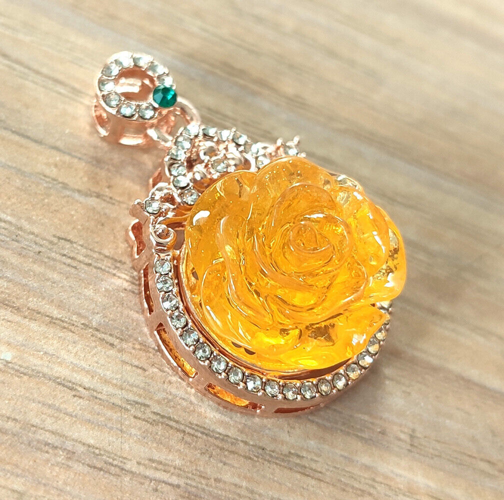 琥珀 ネックレス ナチュラルゴールド蜜蝋琥珀手彫りローズネックレスペンダントジュエリーギフト すぐにお届けできます。