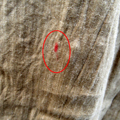 【状態】前側右ひざ部分に2センチ程度の赤い汚れがありますが、その他に目立ったダメージはなく、問題なくご使用いただける商品です。 ※あくまでも中古品ですので掲載写真や記載内容をご確認いただき、ご理解の上ご購入ください。