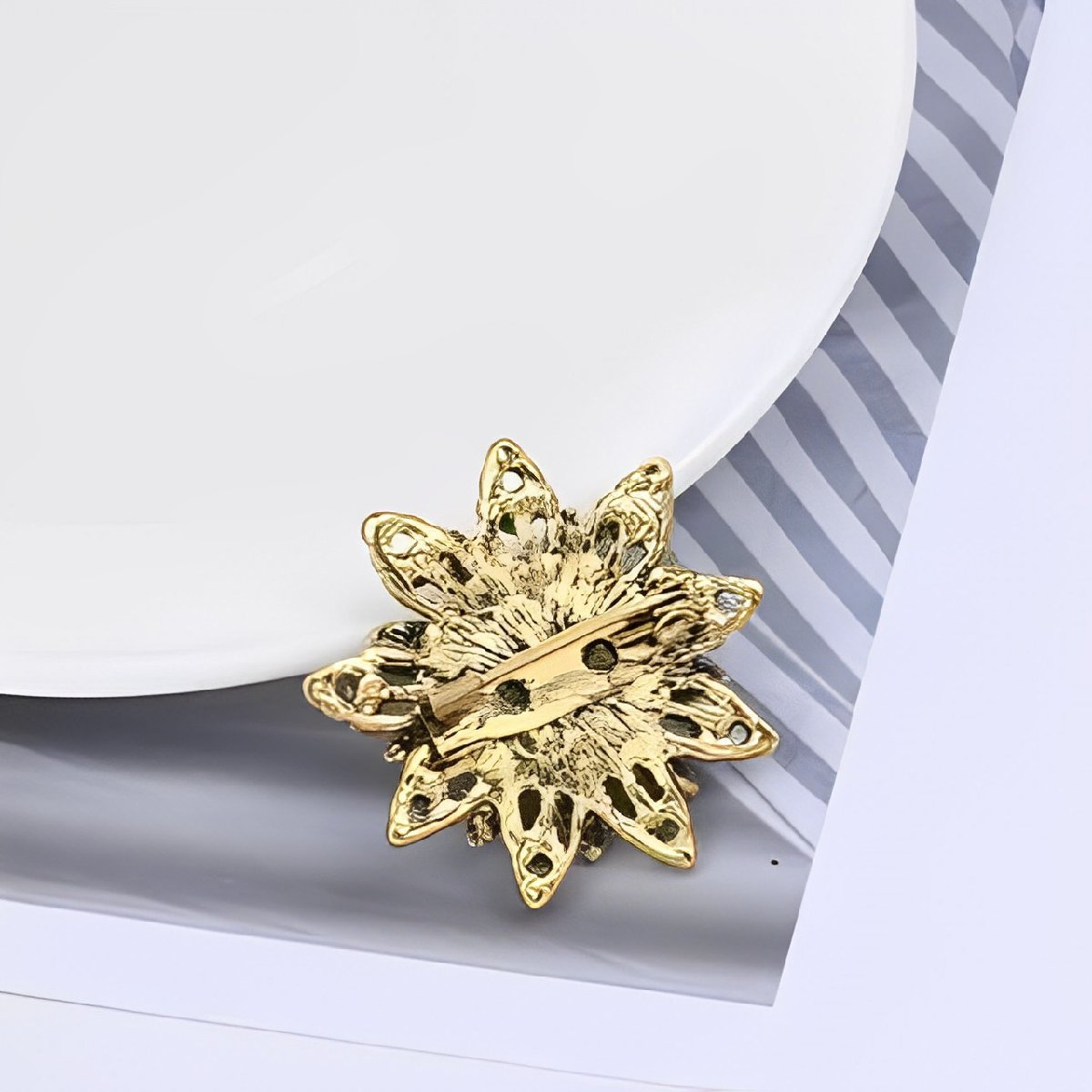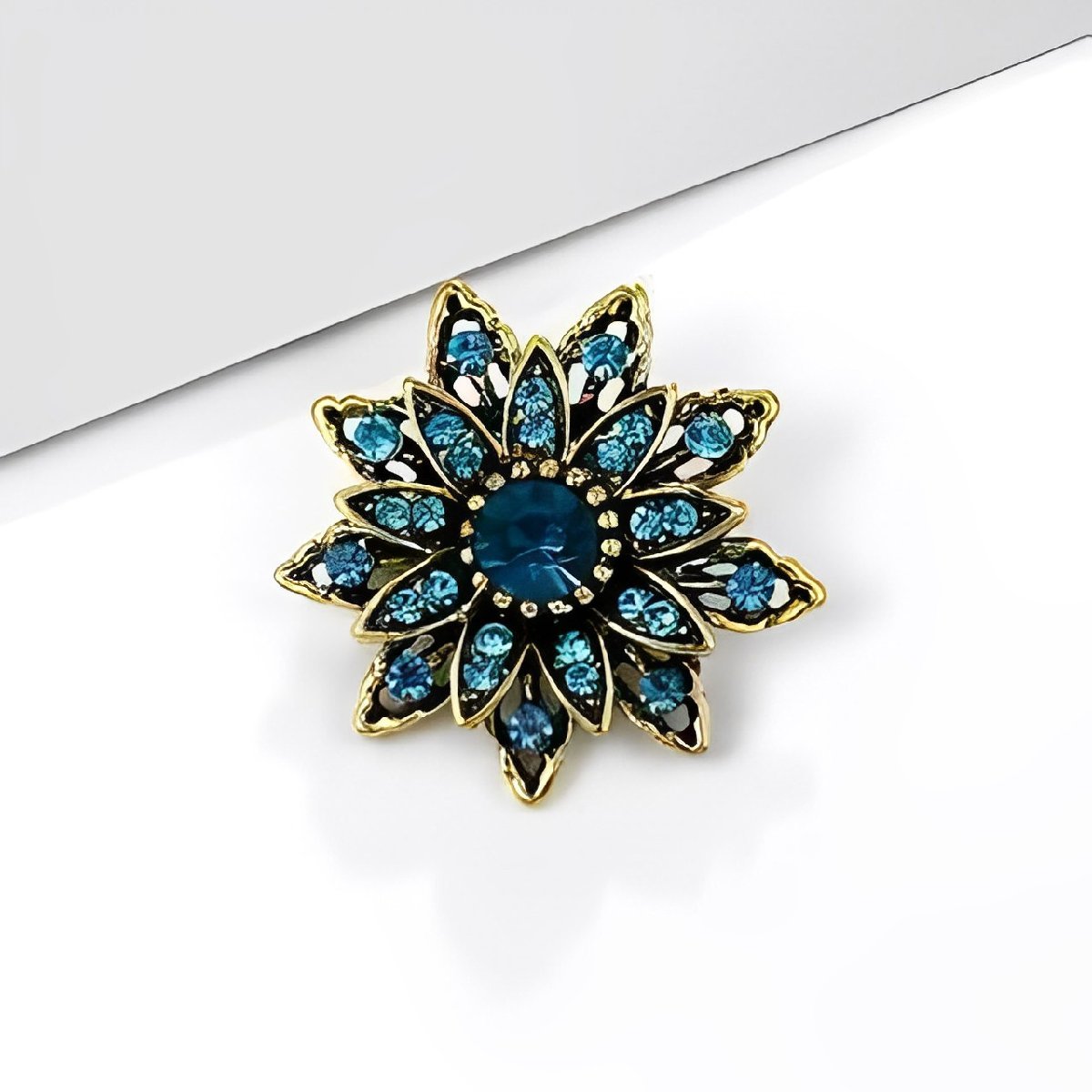 ②レトロ ブロンズ フラワー ブローチ/青