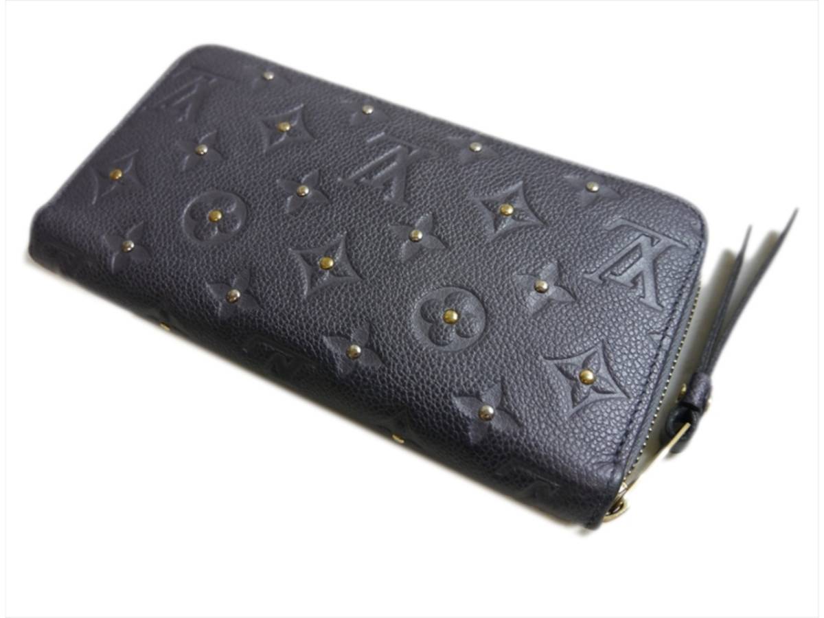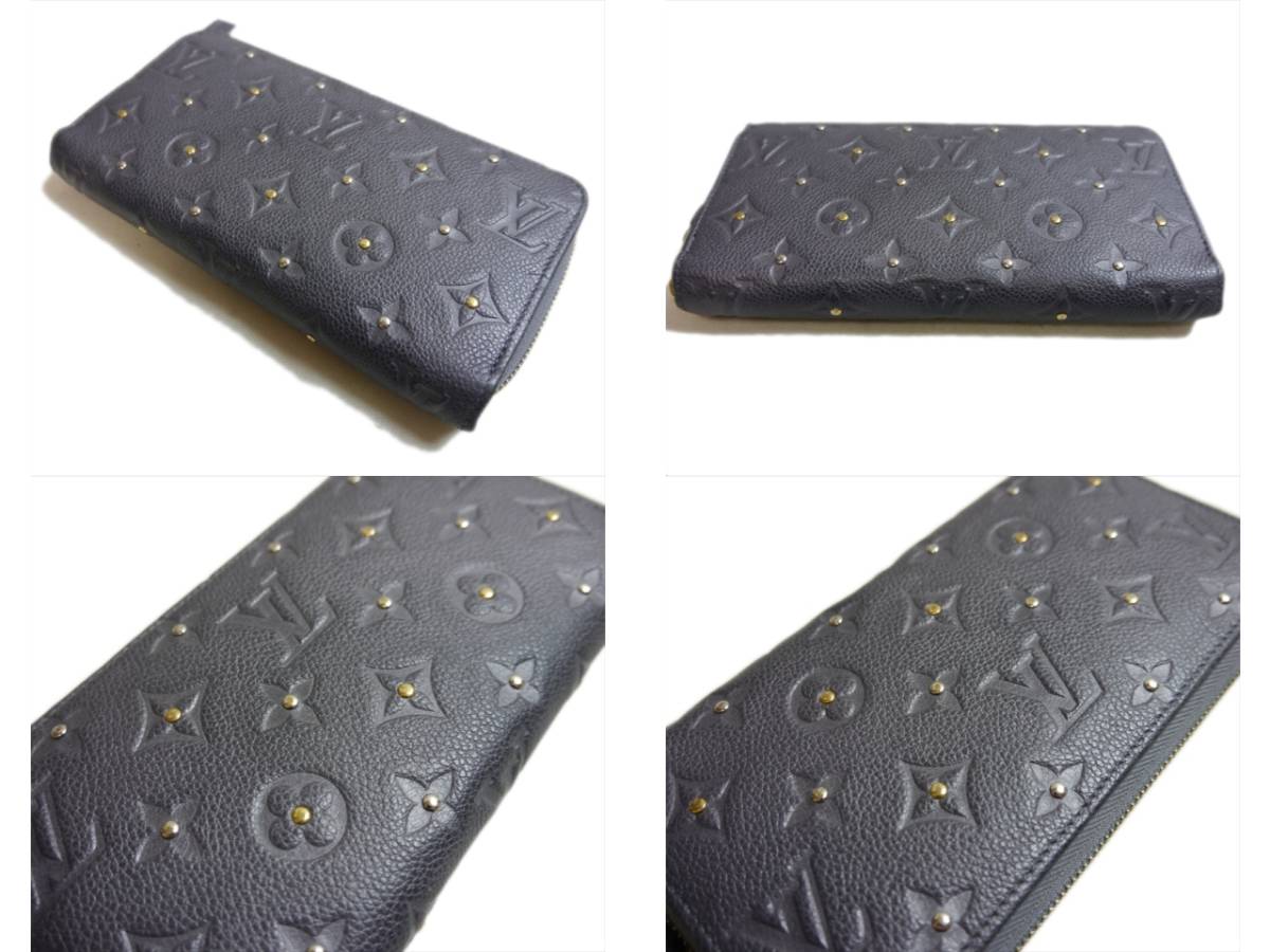 極上品 ルイヴィトン アンプラント ラウンドファスナー長財布 ジッピーウォレット ネイビー レザー スタッズ