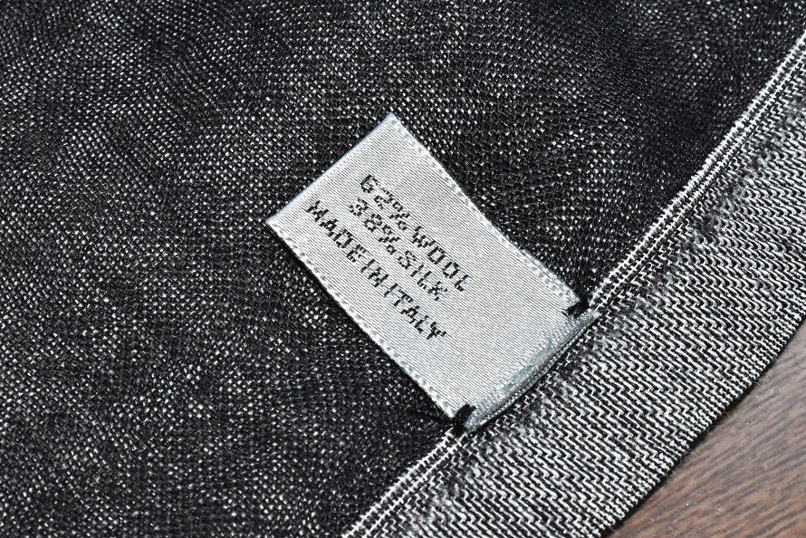 メイド・イン・イタリー(表示あり)、素材はウール62%、シルク38%、素人採寸ですが全長約195cm、横幅約70cm、タグなし未使用、購入後はビニール袋に入れて大切に保管しています。