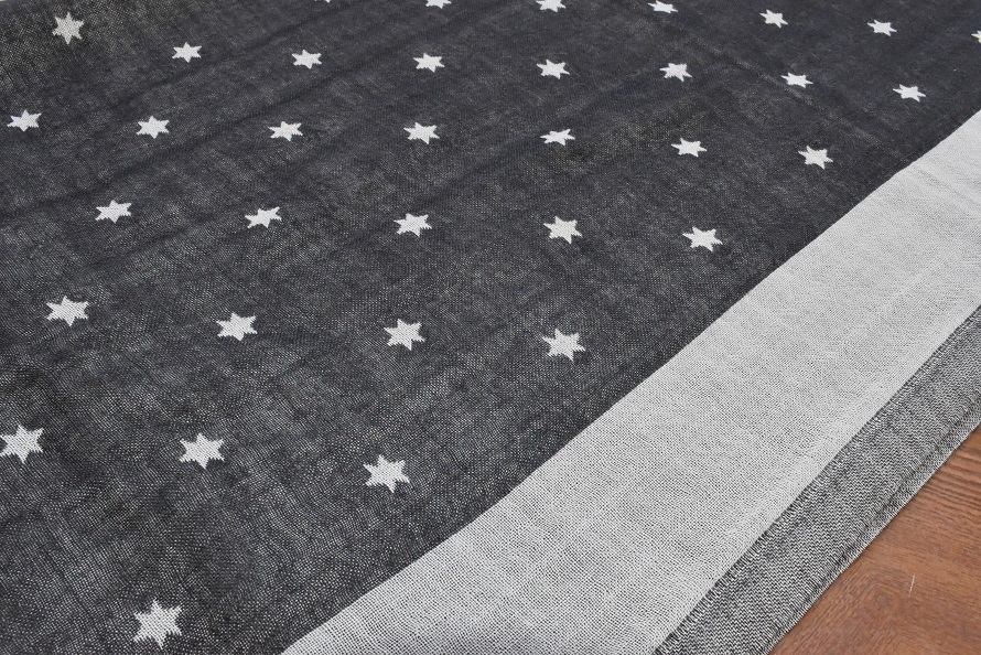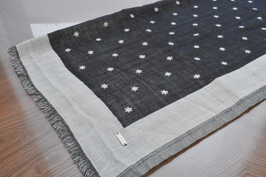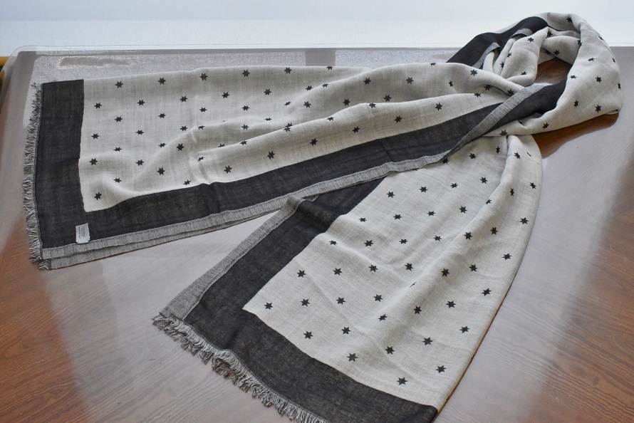 素材に、シルク混紡の軽く柔らかな上質な生地を採用したストールで、ファッションの世界で幅広く愛され、その多様性と魅力的な要素から、様々なアイテムに取り入れられてるスター柄をジャガードで織り込んだ、洗練されたスタイルをコーデに与えてくれるデザインのアイテムです。