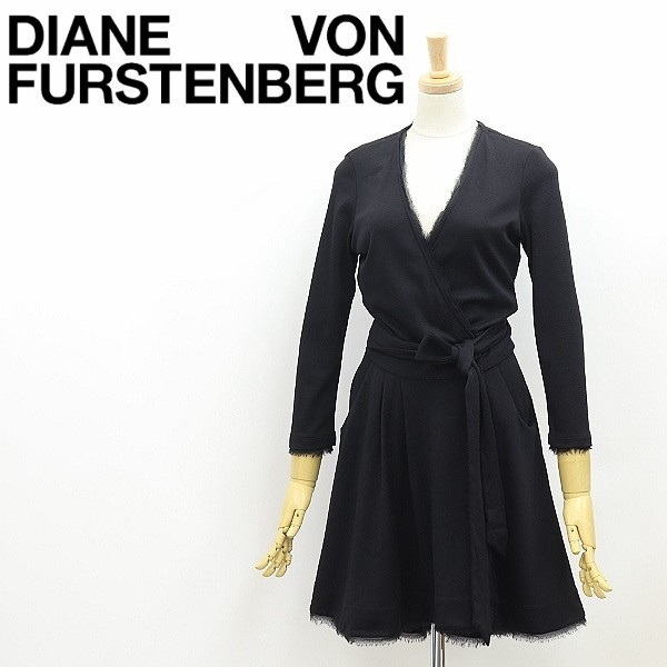 | ◆DIANE von FURSTENBERG ダイアンフォンファステンバーグ BALLERINA シルク使い ウール タック フレア ラップ ワンピース 黒 ブラック 4 | |