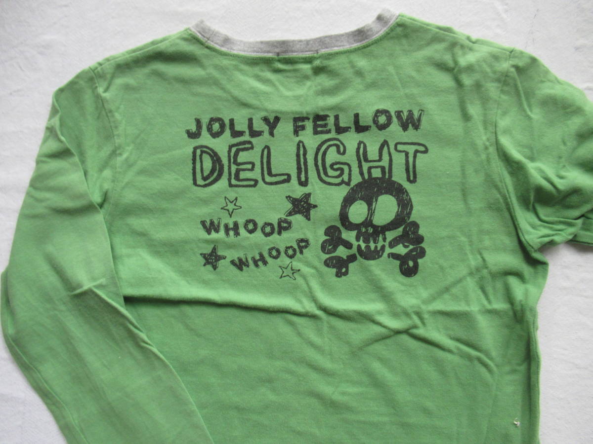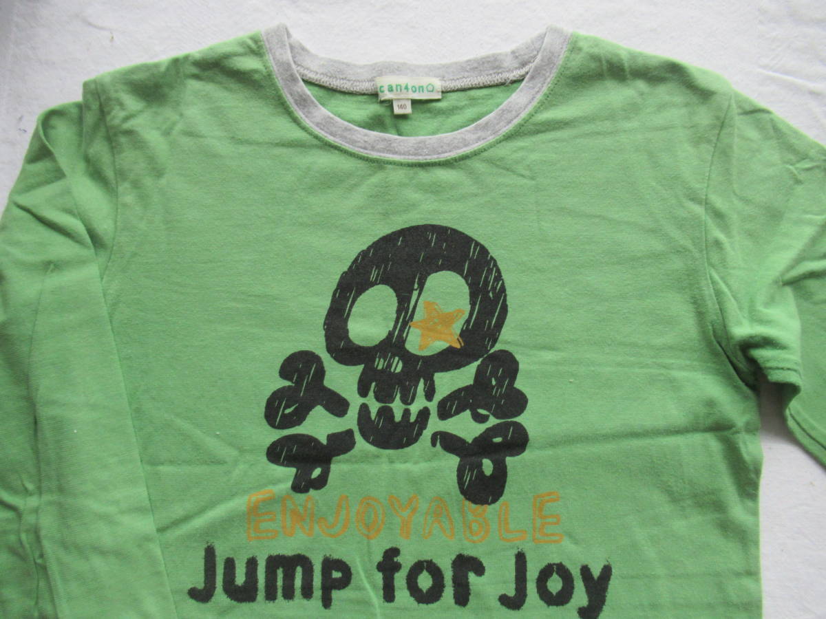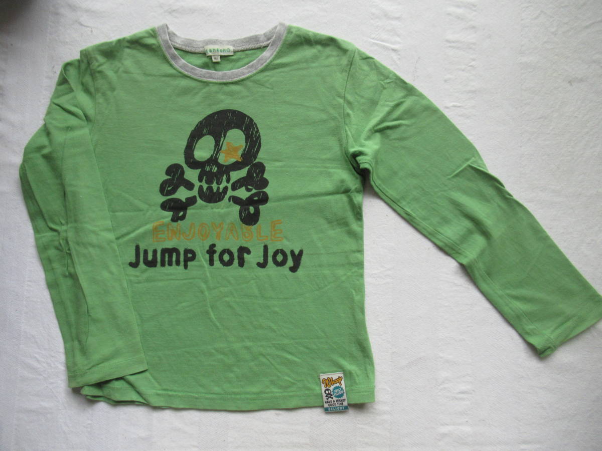 長袖Tシャツ 140 3can4on 綿100% グリーン地 どくろ柄
